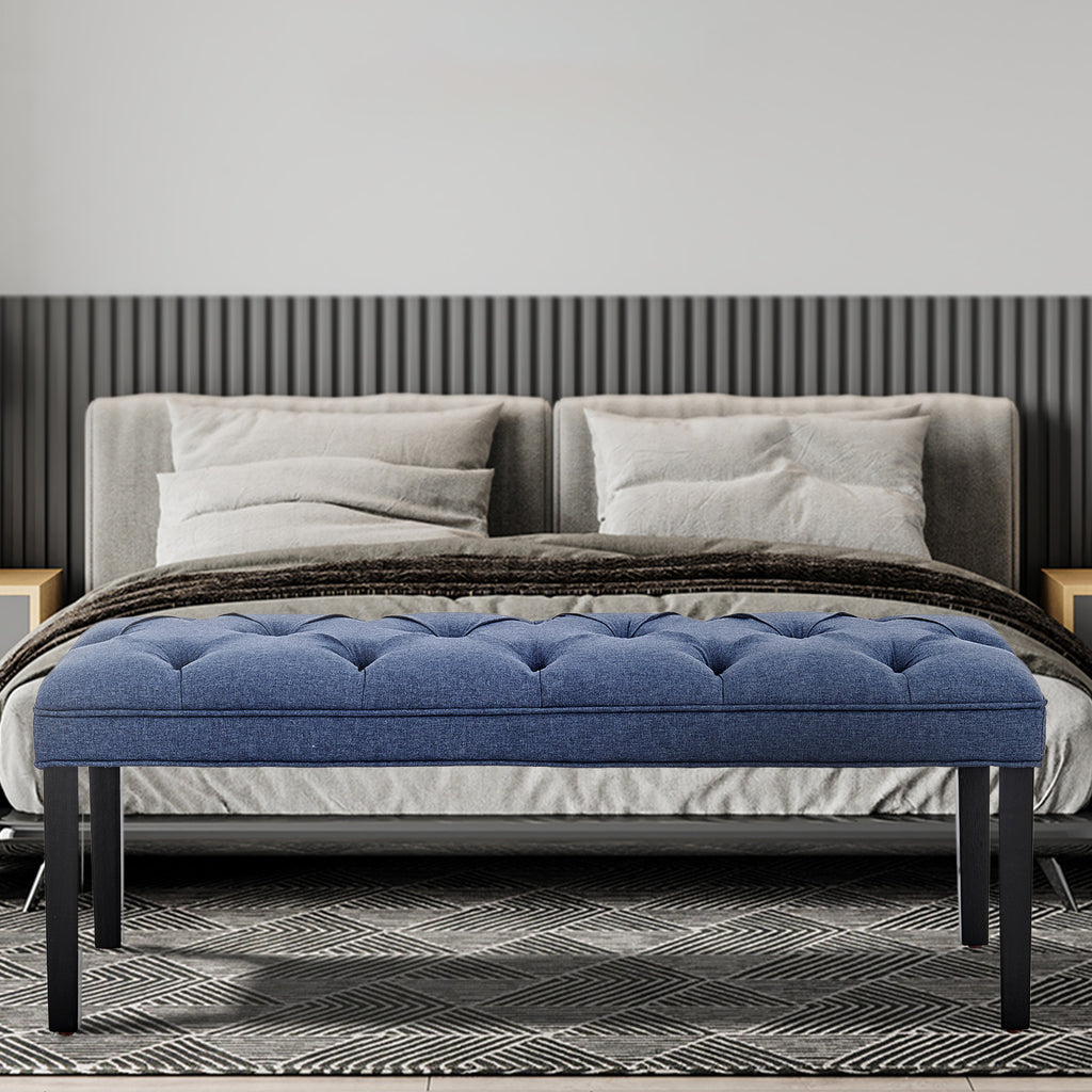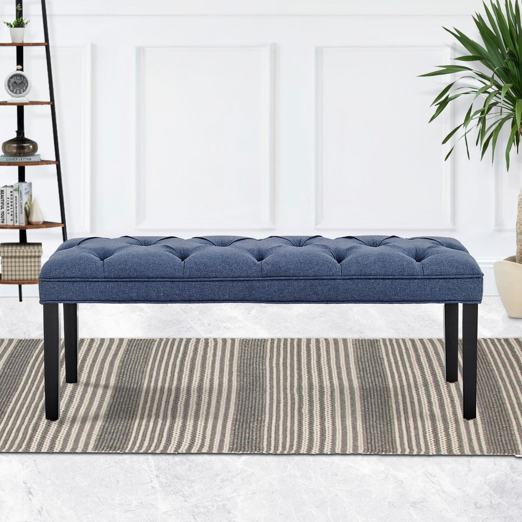 The button-tufted upholstery is made with breathable linen and sits on top of solid wooden legs for superior durability. This bench measures 123cm wide and offers generous seating for you and your guests. Choose from three fabulous shades to complement your existing home decor!