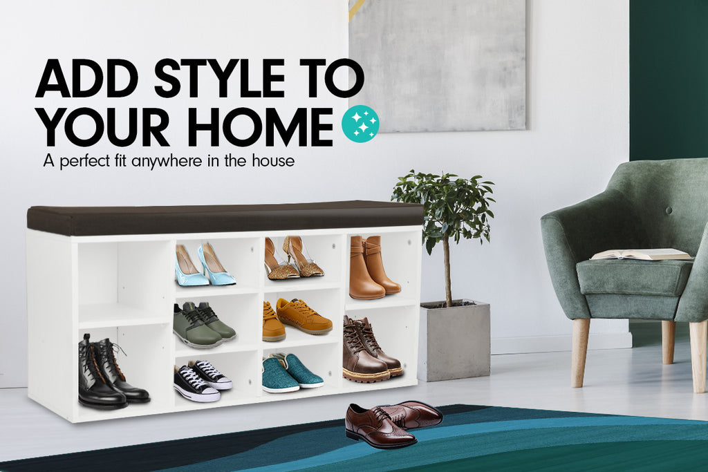 Eliminate the appearance of clutter and create a neat, organized space with this shoe cabinet with padded bench.