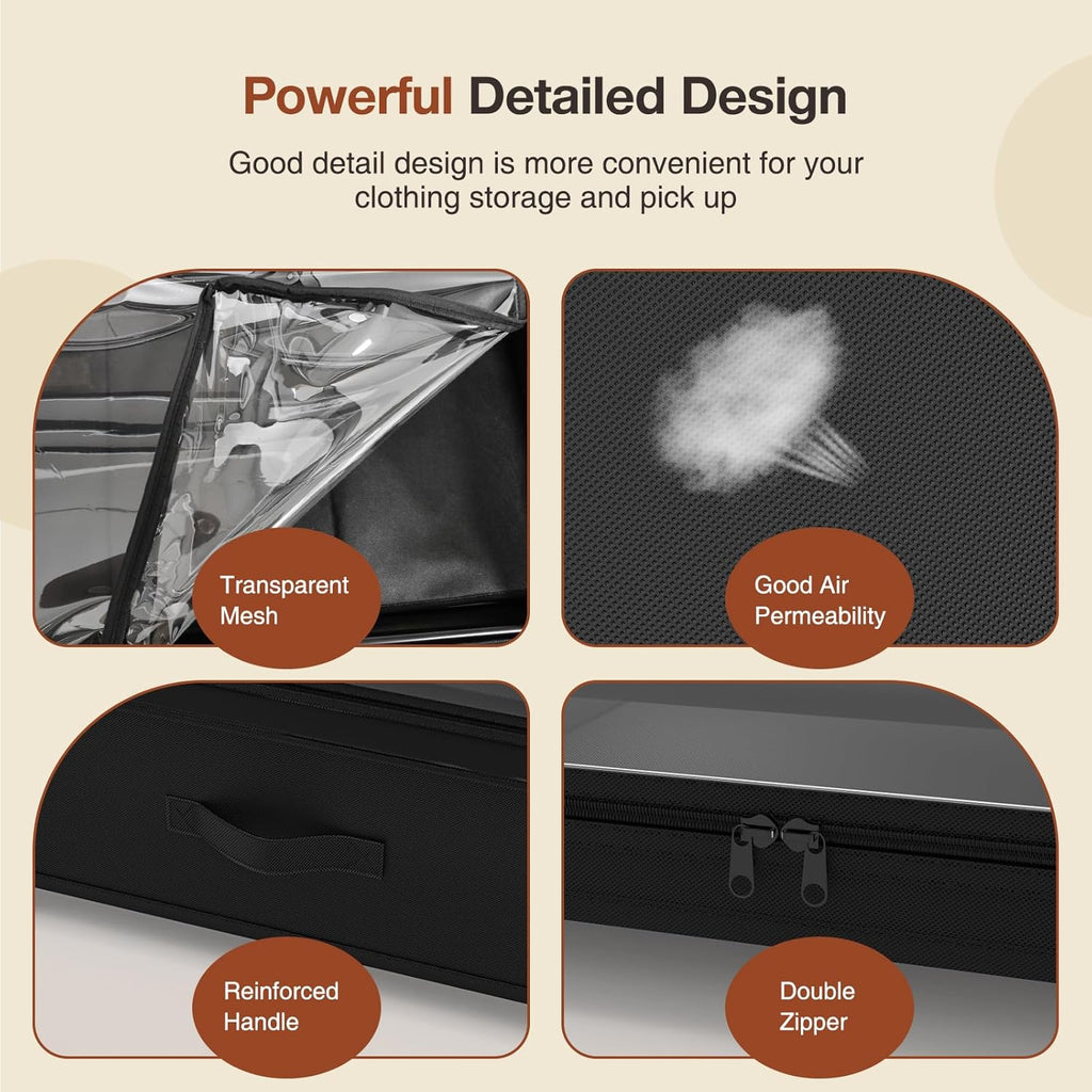 • DURABLE & STURDY DESIGN WITH DUSTPROOF LID: Built with a strong metal frame and high-quality Oxford fabric, this under-bed storage container is designed for durability and long-lasting use. The transparent PVC lid with dual zippers keeps your belongings safe from dust and moisture, while allowing easy identification of stored items.
