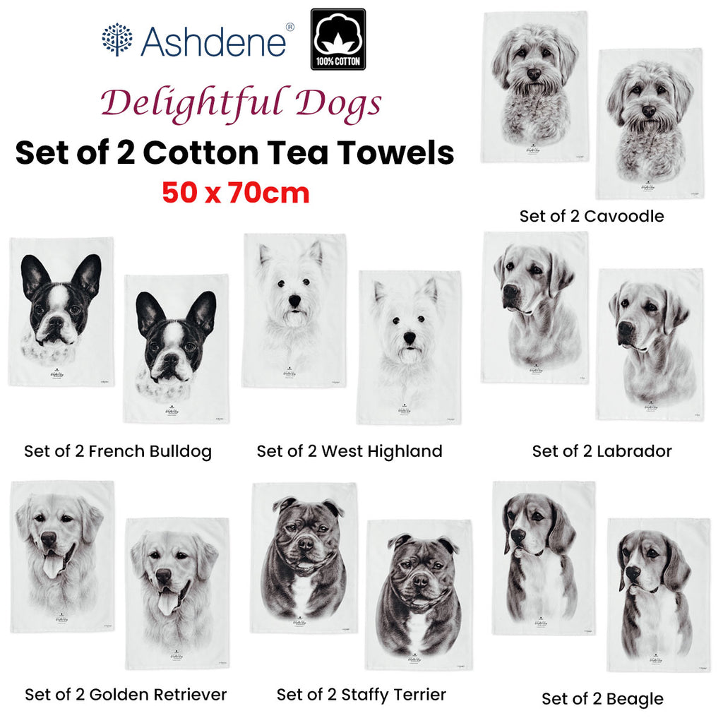 Set of 2 Delightful Dogs Cotton Kitchen Tea Towels 50 x 70 cm Beagle