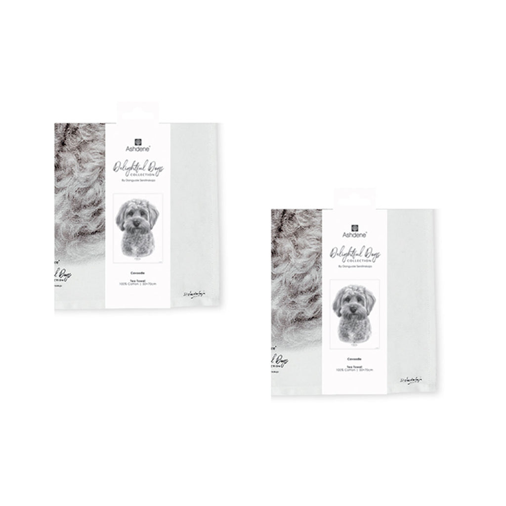 The Set of 2 Delightful Dogs Kitchen Tea Towels 50 x 70 cm celebrates your furry companions with hand painted artworks by talented Lithuanian artist Danguole Serstinskaja. Perfectly capturing the unique personality and characteristics of Australia's most popular dog breeds, presenting life-like, black, white & grey illustrations. Multi-functional kitchen accessory. Detailed dog artwork in a black and white design. Made from 100% cotton - machine washable for easy cleaning. Generously sized to have on display or clean up spills. Ideal for all dog lovers!