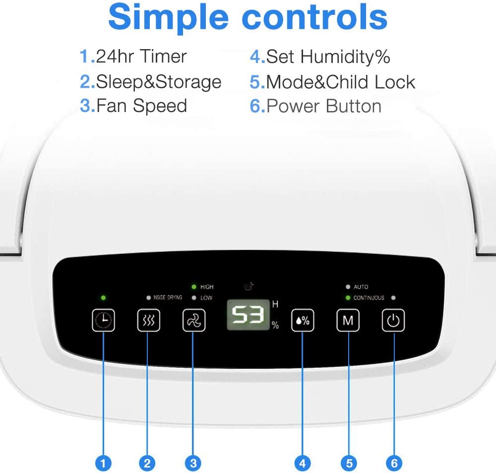 - Ready-select electronic controls with digital humidity readout, 24-hour on/off timer and control lock