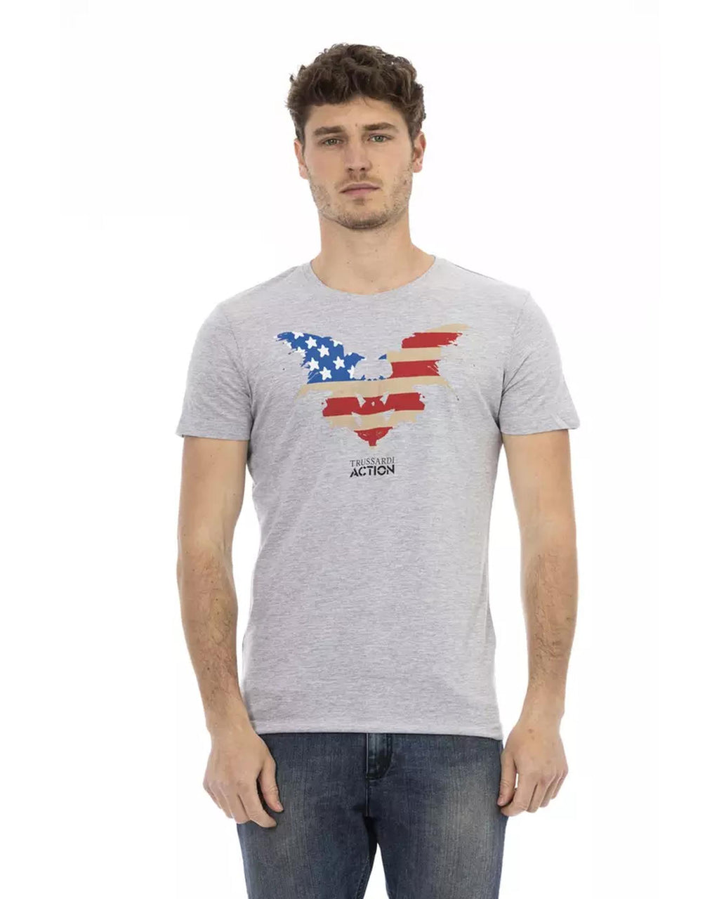Short Sleeve Round Neck T-shirt with Front Print 2XL Men