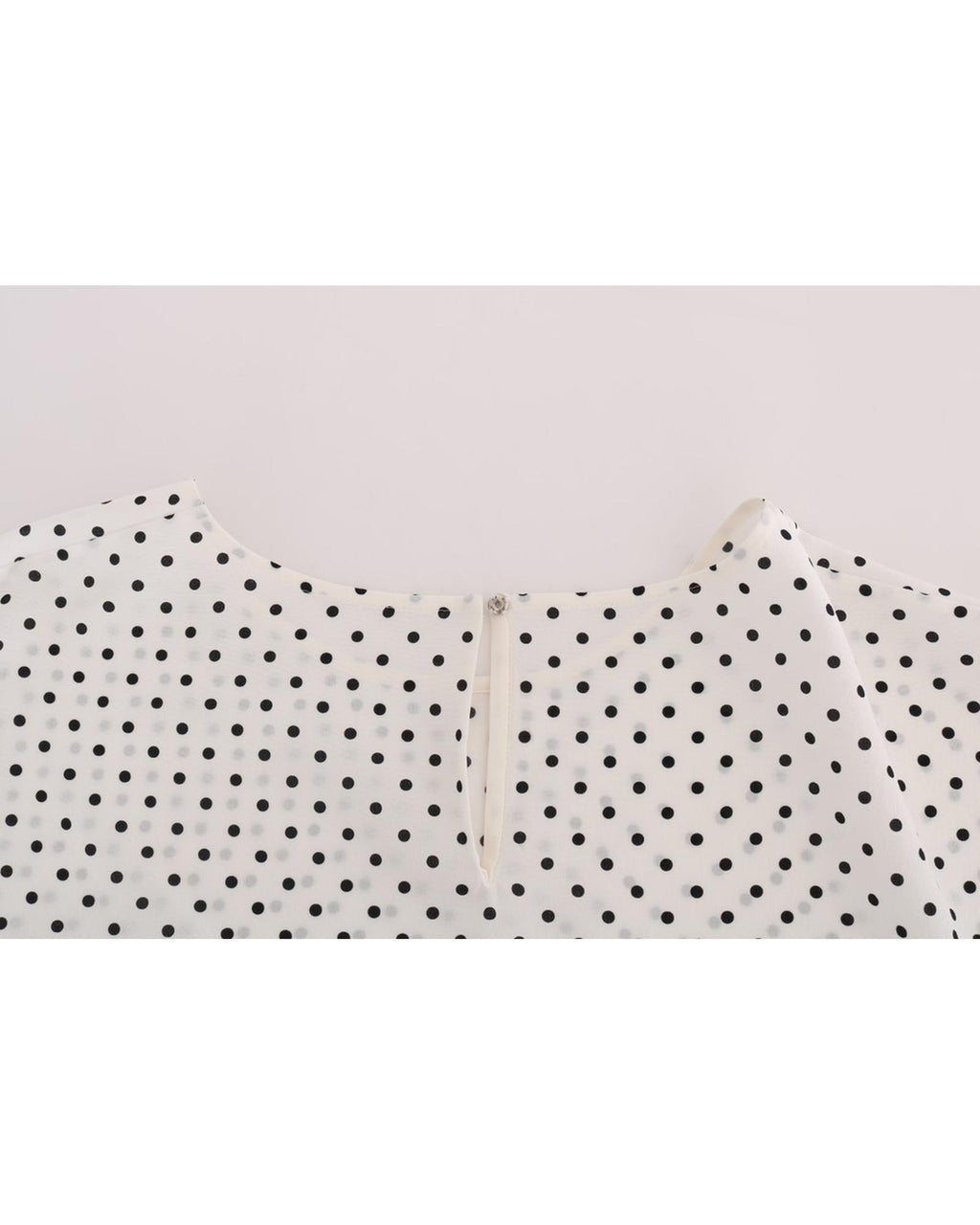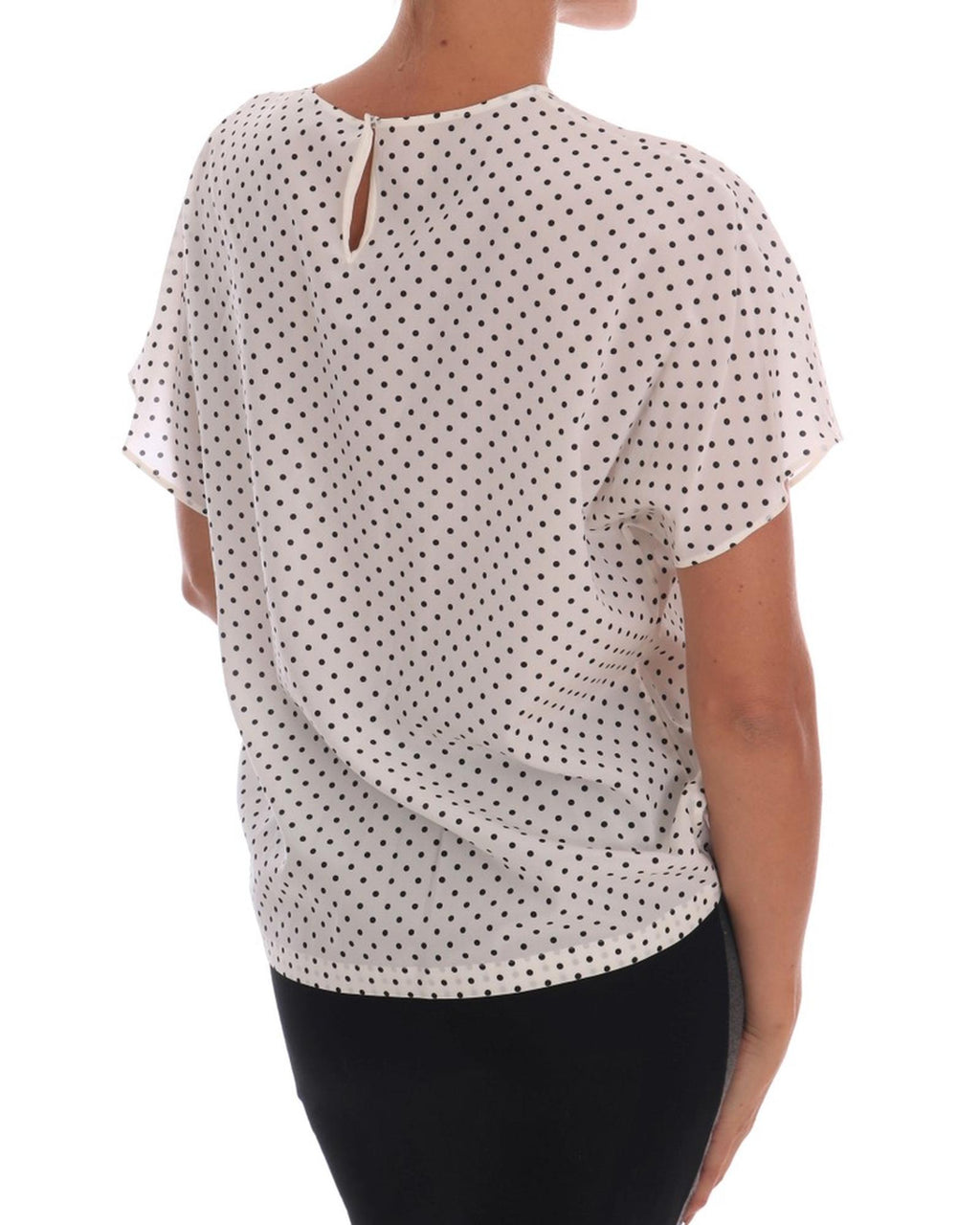 Short Sleeve Silk Blouse with Polka Dots and Logo Details 40 IT Women