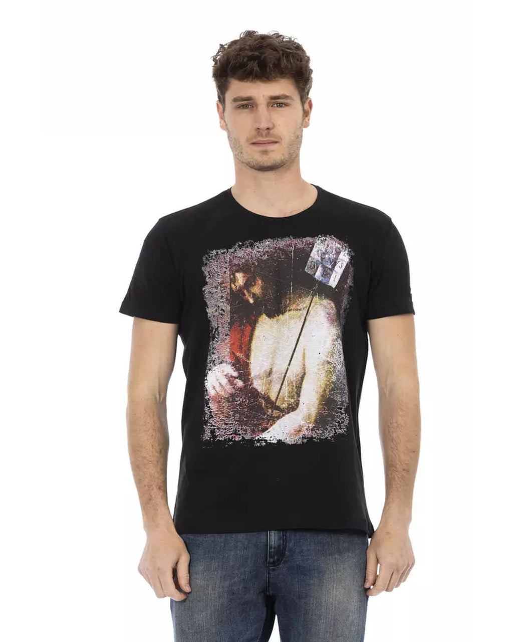 Short Sleeve T-shirt with Round Neck and Front Print 3XL Men