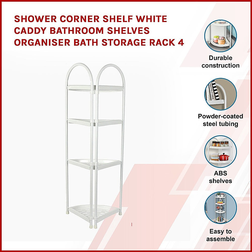 Shower Corner Shelf White Caddy Bathroom Shelves Organiser Bath Storage Rack 4