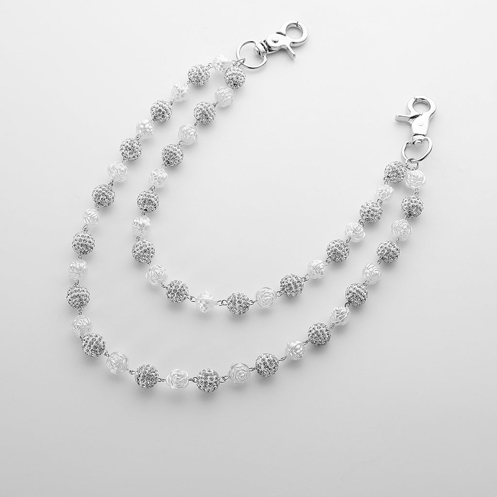 Silver and White Bling Rhinestone Beaded Wallet Chain - Double Layer Hip Hop Trouser Chain Jean Accessory(72g)