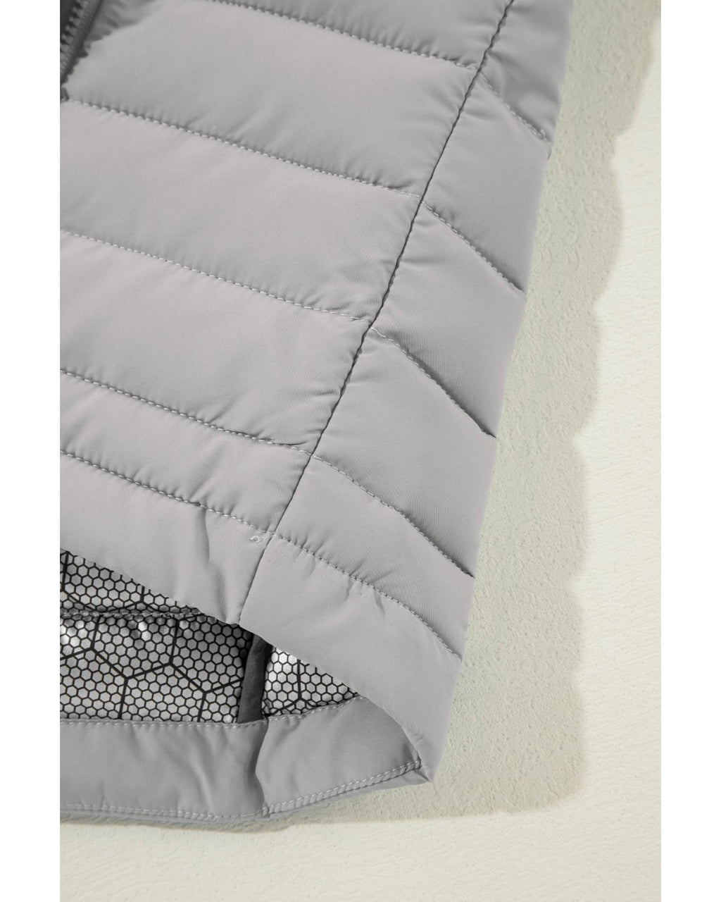 Silvery Plush Collared Quilted Zipped Puffer Vest - L