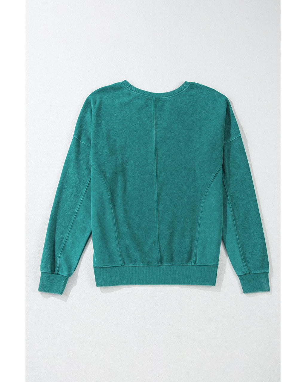 Skobeloff Solid Color Notched Neck Drop Shoulder Sweatshirt - S