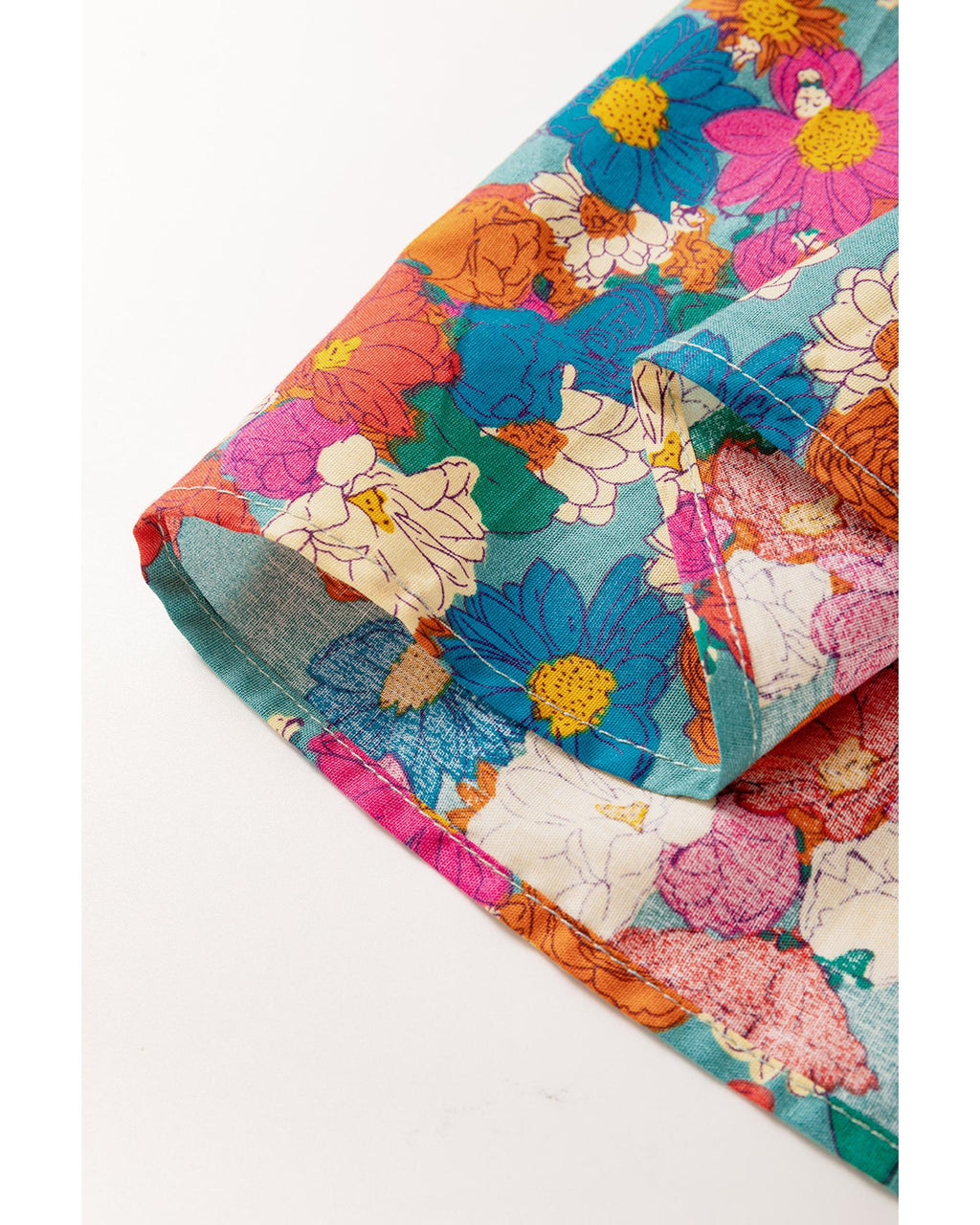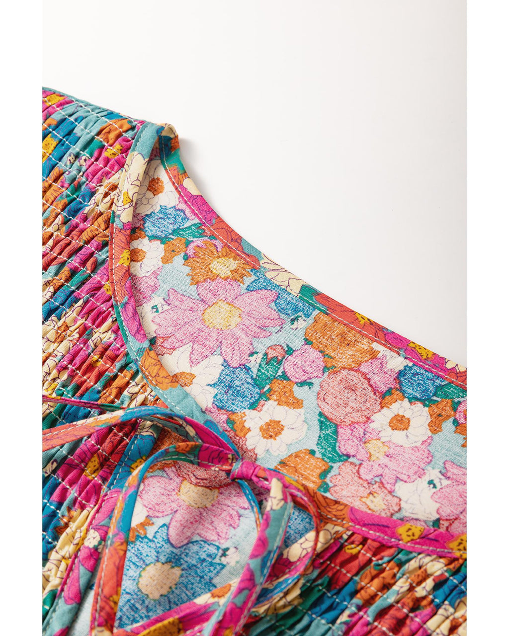 Sky Blue Plus Size Floral Print Shirred Ruffle Tiered Mini Dress - 4X