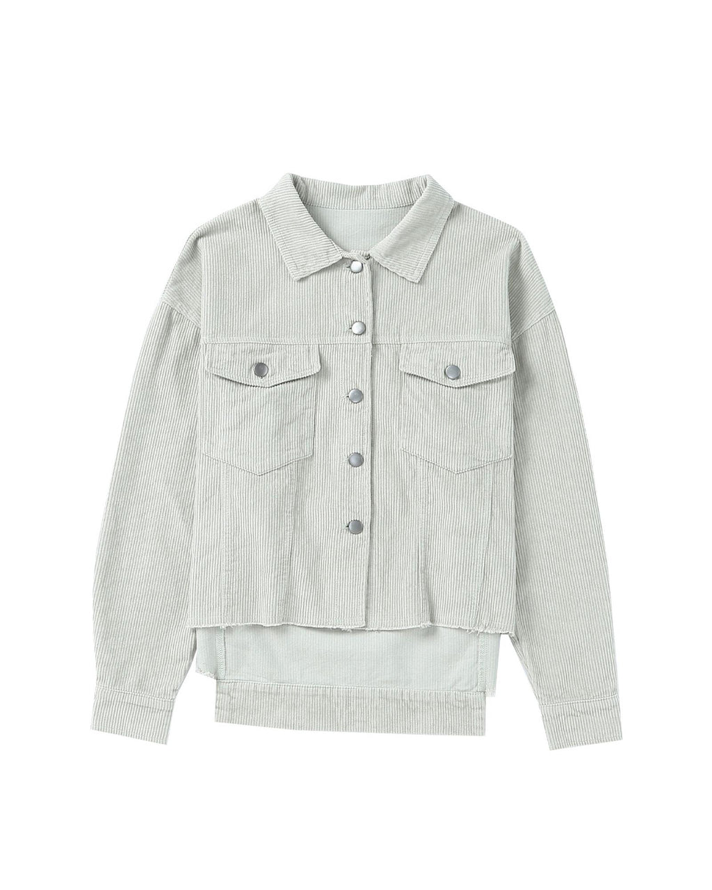 Sky Blue Raw Hem Flap Pockets Cropped Corduroy Jacket - XL