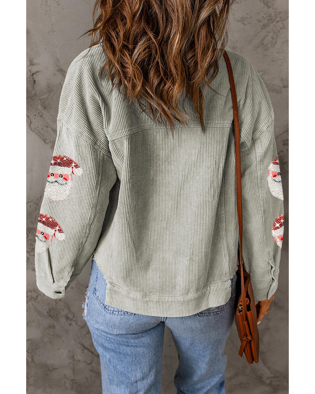 - Our styles are designed with a trendy fitted look in mind following an international size standard. For the best fit we suggest choosing one size up from your usual. Be sure to check our sizing chart to find your perfect match! Sky blue sequined Santa Claus flap pocket corduroy jacket Unique Santa Claus print on the flap pocket Made from high