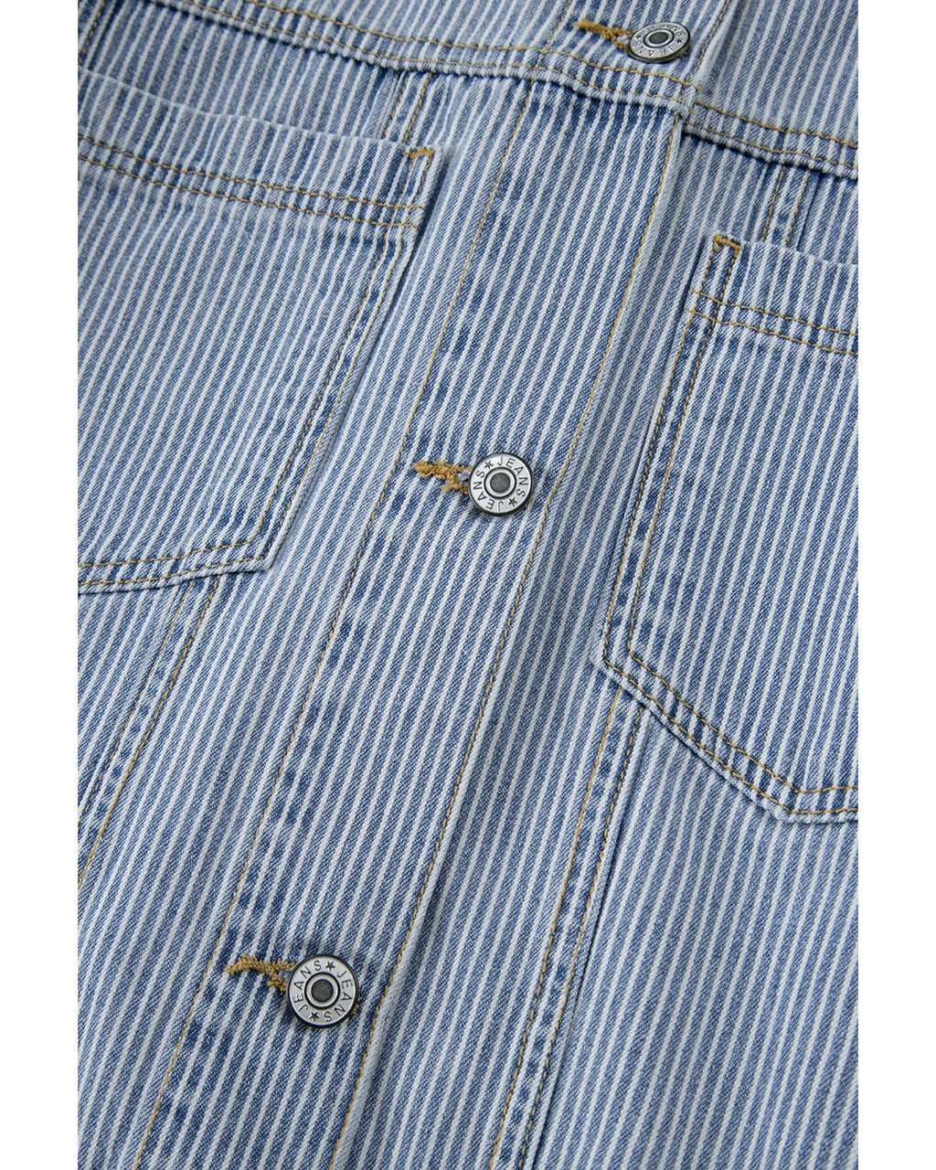 Sky Blue Stripe Washed Oversize Pocketed Denim Jacket - L