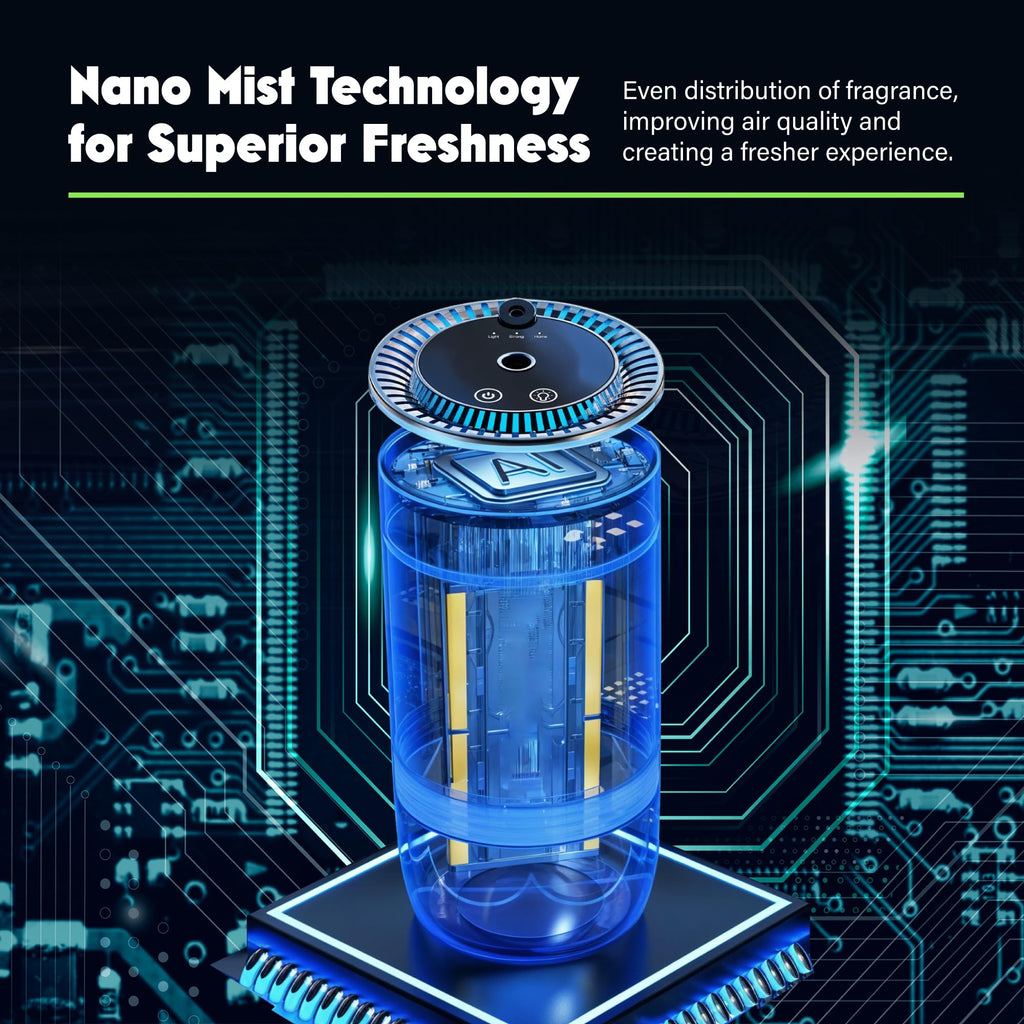 - Nano Mist Technology: Disperses your own purchased fragrance into fine particles for thorough, long-lasting odor elimination.