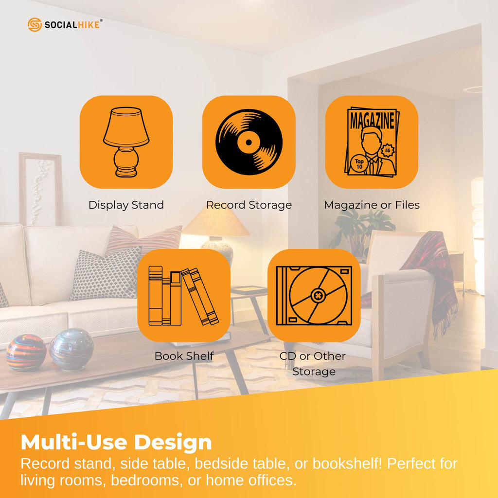 • Multi-Use Design – Functions as a record stand, side table, bedside table, or bookshelf, perfect for living rooms, bedrooms, or home offices.