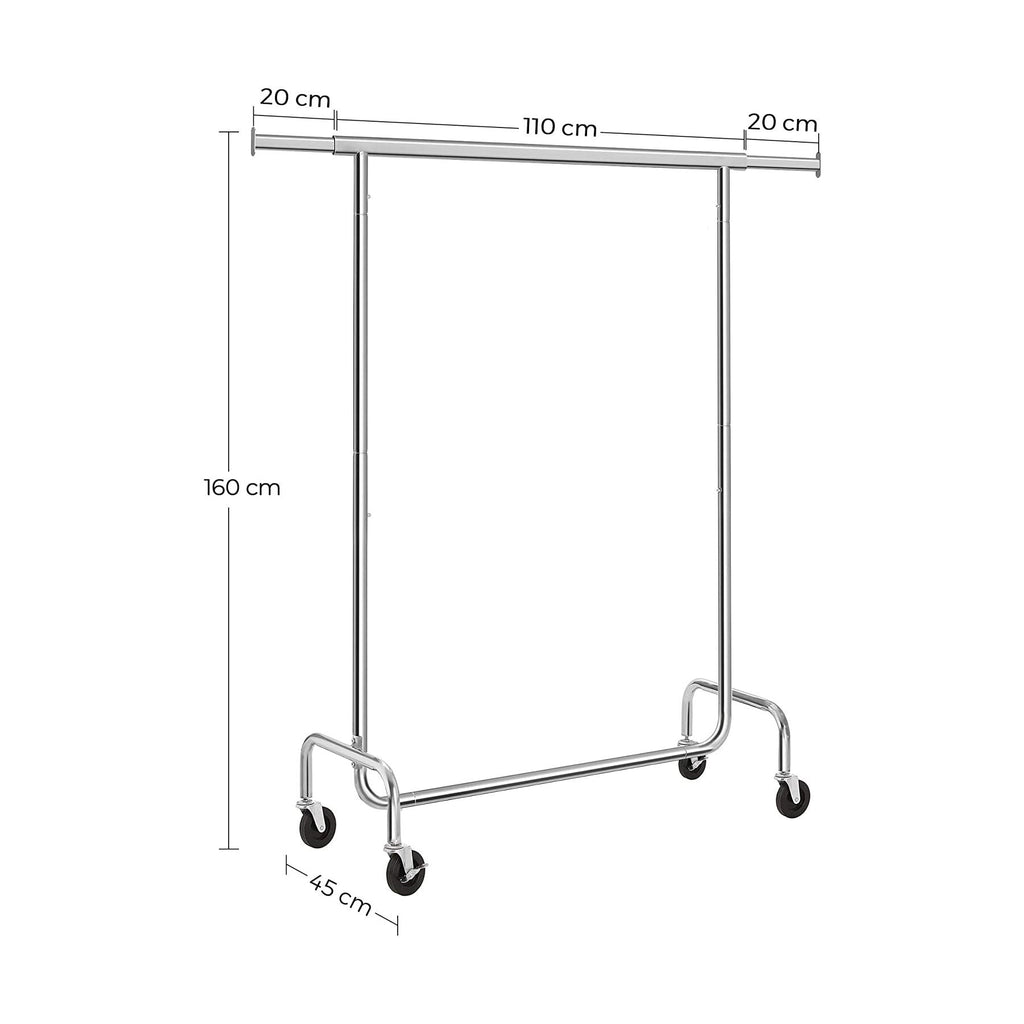 Heavy-Duty Structure: All metal chrome-plated tubes for the whole garment rack; flat tubing for top rail; it can hold up to 136 kg (300 lb) when weight is evenly distributed without wobbling and deformation