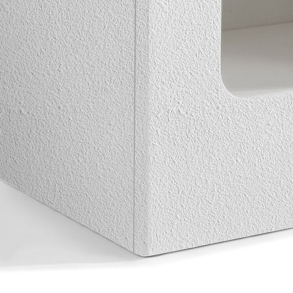 Dreaming of evenings spent spent contemplating the sun setting into the Mediterannean? A one-way ticket to Santorini may be out of reach, but the Sora collection is the next best thing. With its unique style featuring a white stucco-like finish and a curvelinear silhouette, it will infuse your home with a relaxing vibe.