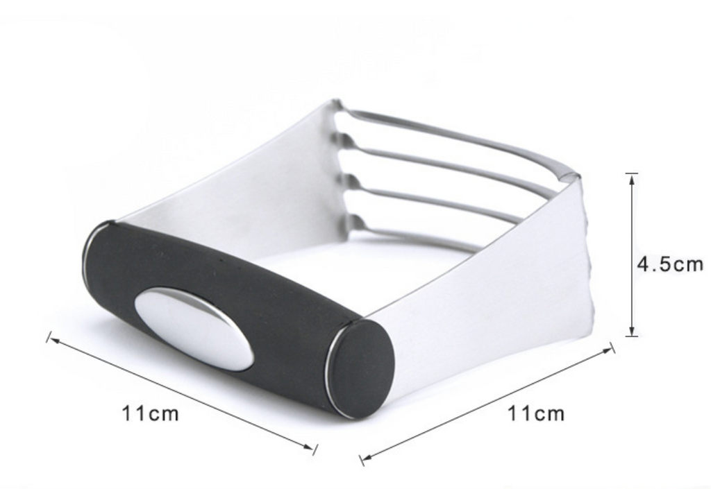 This stainless steel dough blender is ideal for cutting and blending wet and dry ingredients quickly and easily.