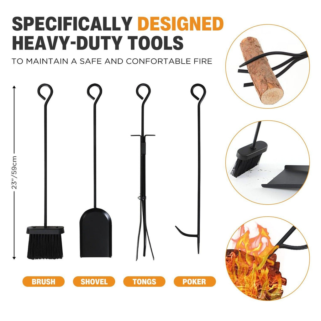 - All-in-One Convenience: Includes a sturdy firewood rack and a 4-piece tool set for complete fire management.