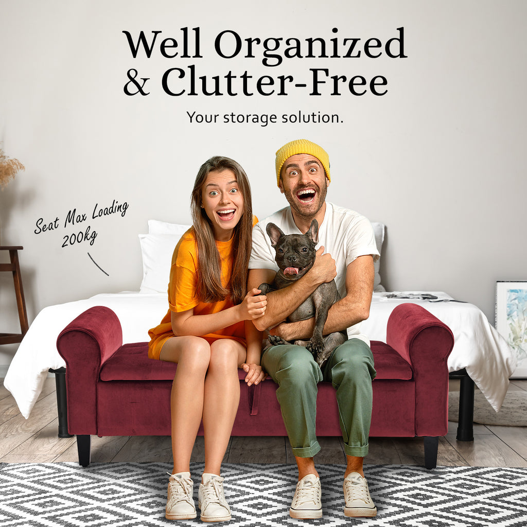 Storage Ottoman Stool Arm Bench Seat 132cm Velvet RED