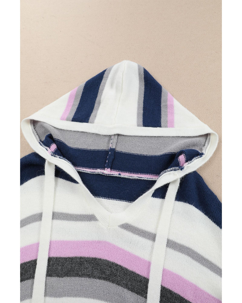 Stripe Plus Size Striped Hooded Knit Sweater - 2X