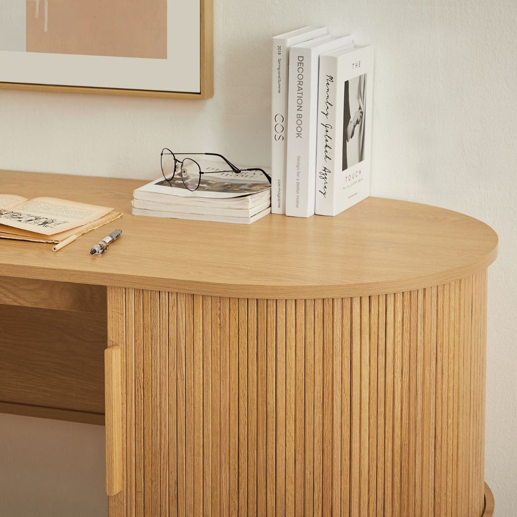Patterns are a great way to bring interest to your room without creating clutter. The ribbed pattern on the carcass of the Tate Wooden desk was chosen to keep your space feeling bright and airy.