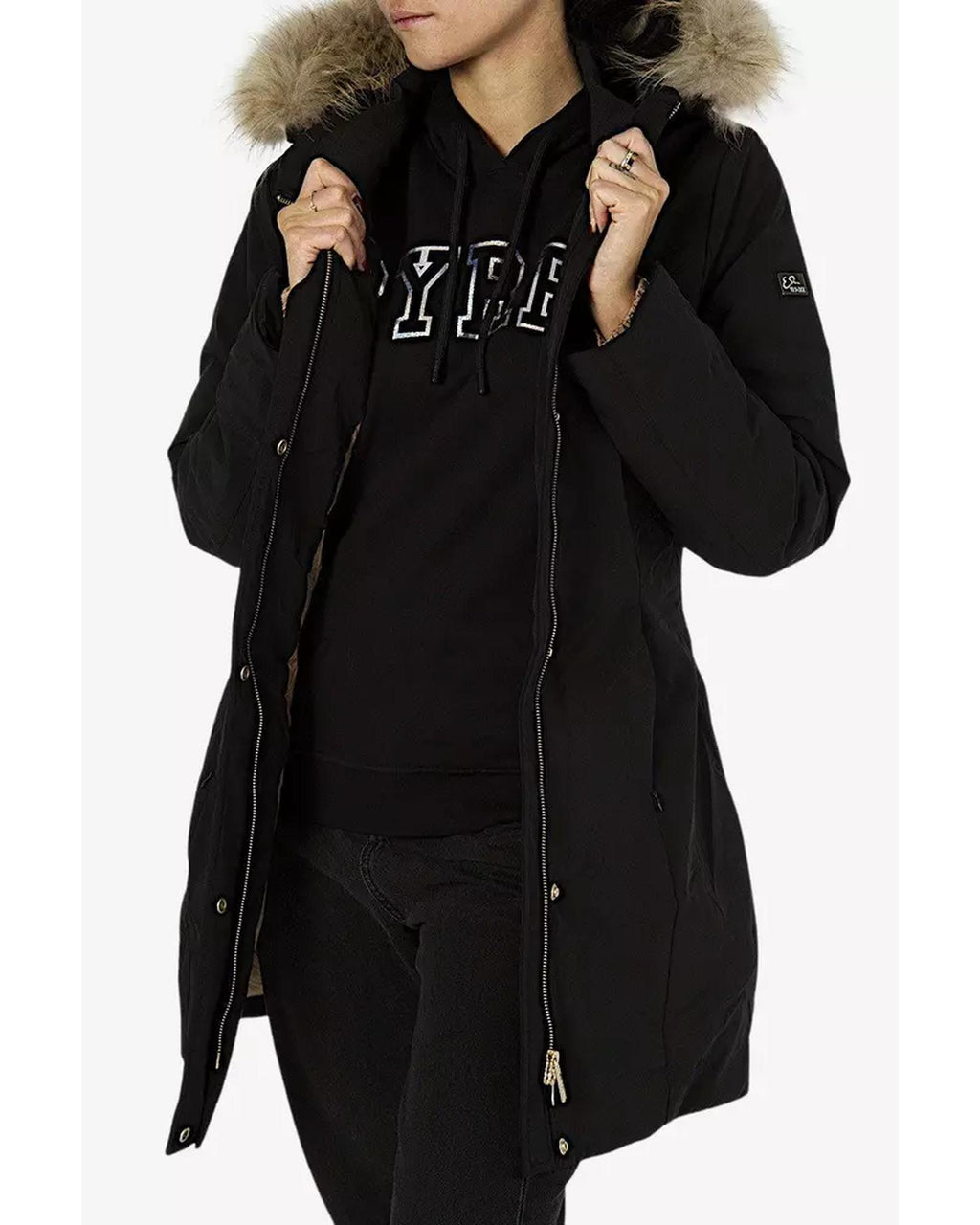 - Hood with luxurious fur