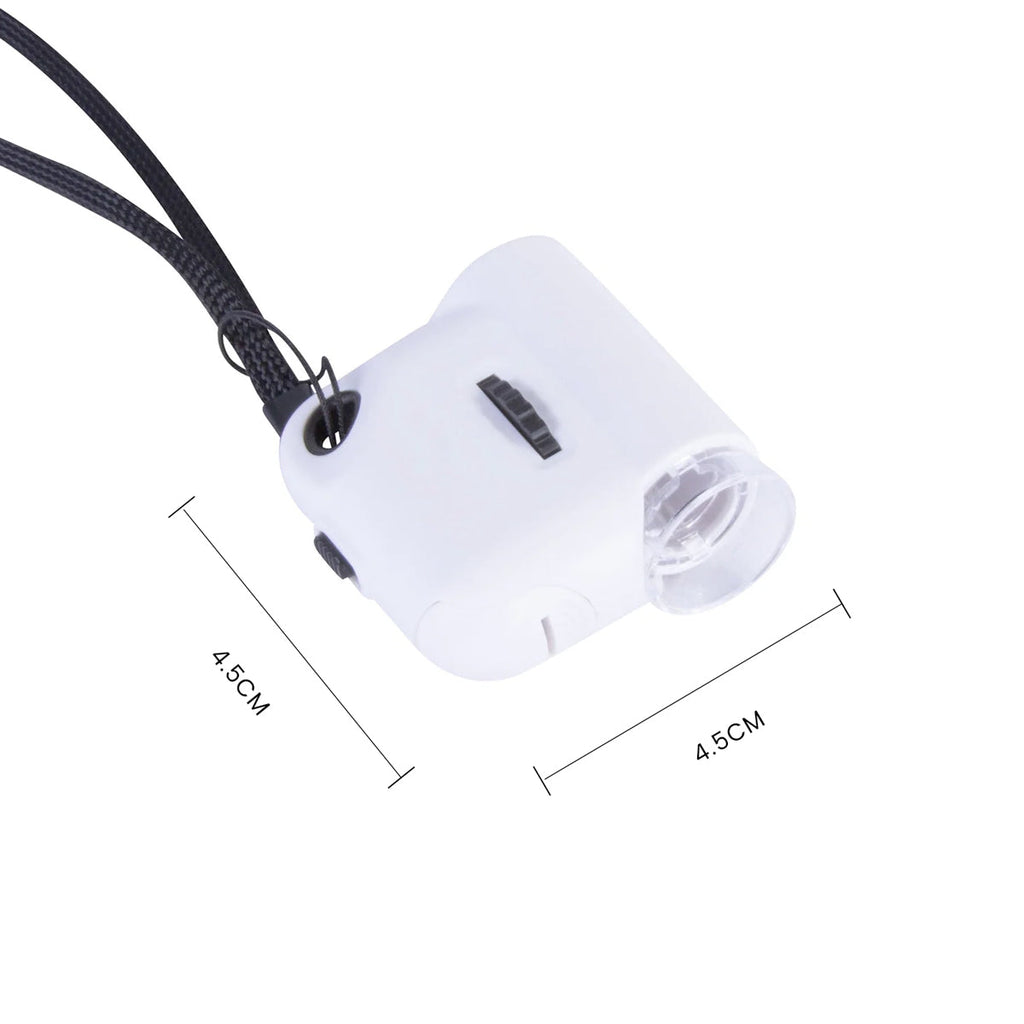 This little microscope is so much fun! It has 10x magnification, adjustable focus and a built-in LED light. Just slide the switch to turn it on. Your child will be thrilled with all the cool things they can discover and see up close.