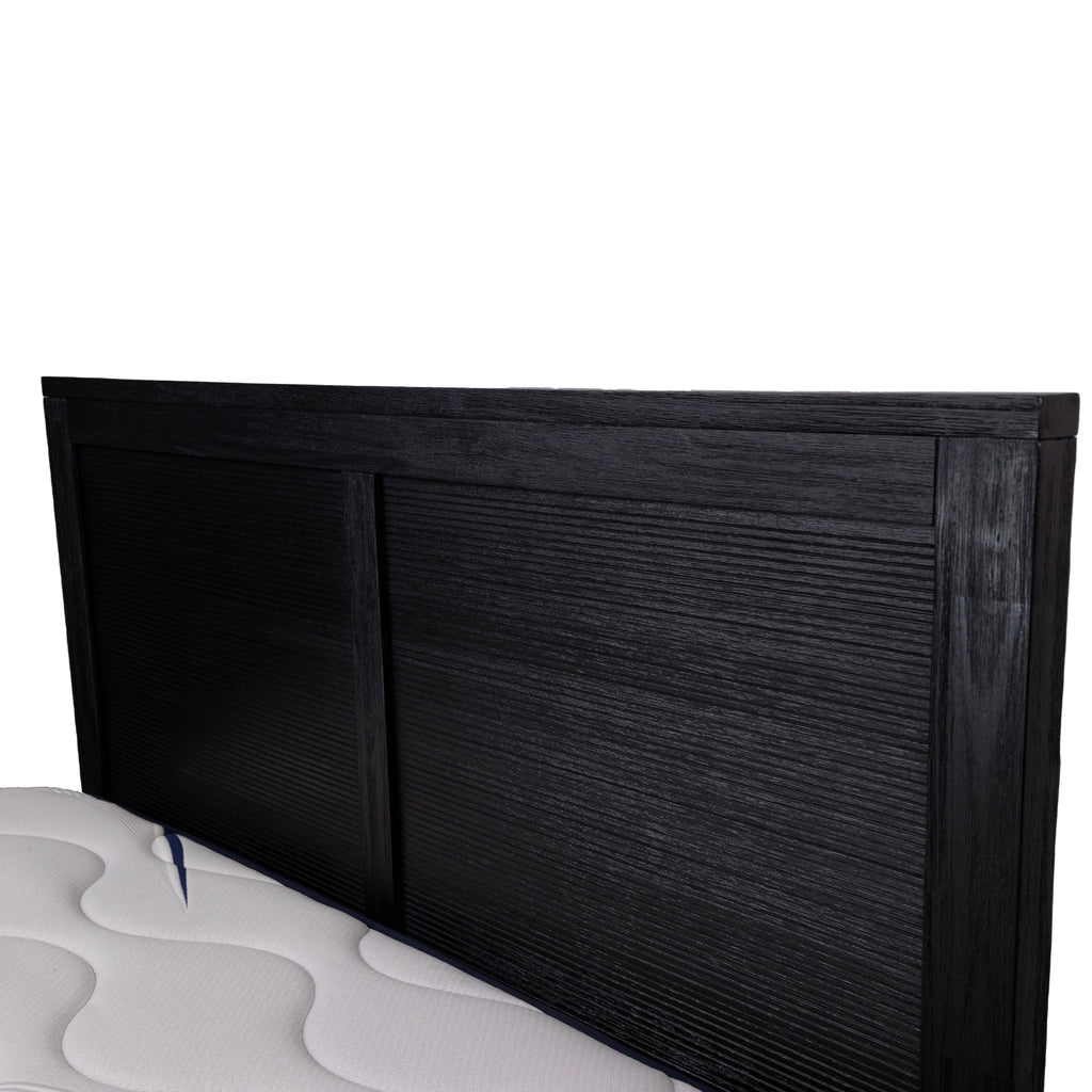 This elegant king-bed makes a bedroom look classy. The bed is crafted in the contemporary style, which not only enhances the charm of the bedroom but also helps keep it well-organized. The bed has 1 large foot-end drawer with wheels underneath. A sturdy construction of solid acacia timber in brushed black finish gives the furniture piece a beautiful shine. The drawer has full metal extension runners and integrated handles for a clean seamless profile. A beautiful headboard gives a classy look to the bed, whereas a solid base structure and strong timber slats with central support leg give it great robustness. The whole furniture collection is made of sustainably harvested wood. The suite's black finish goes well with a variety of interior decor styles, and a one-year warranty is included with the suite. The best part is that only the bed needs assembly.