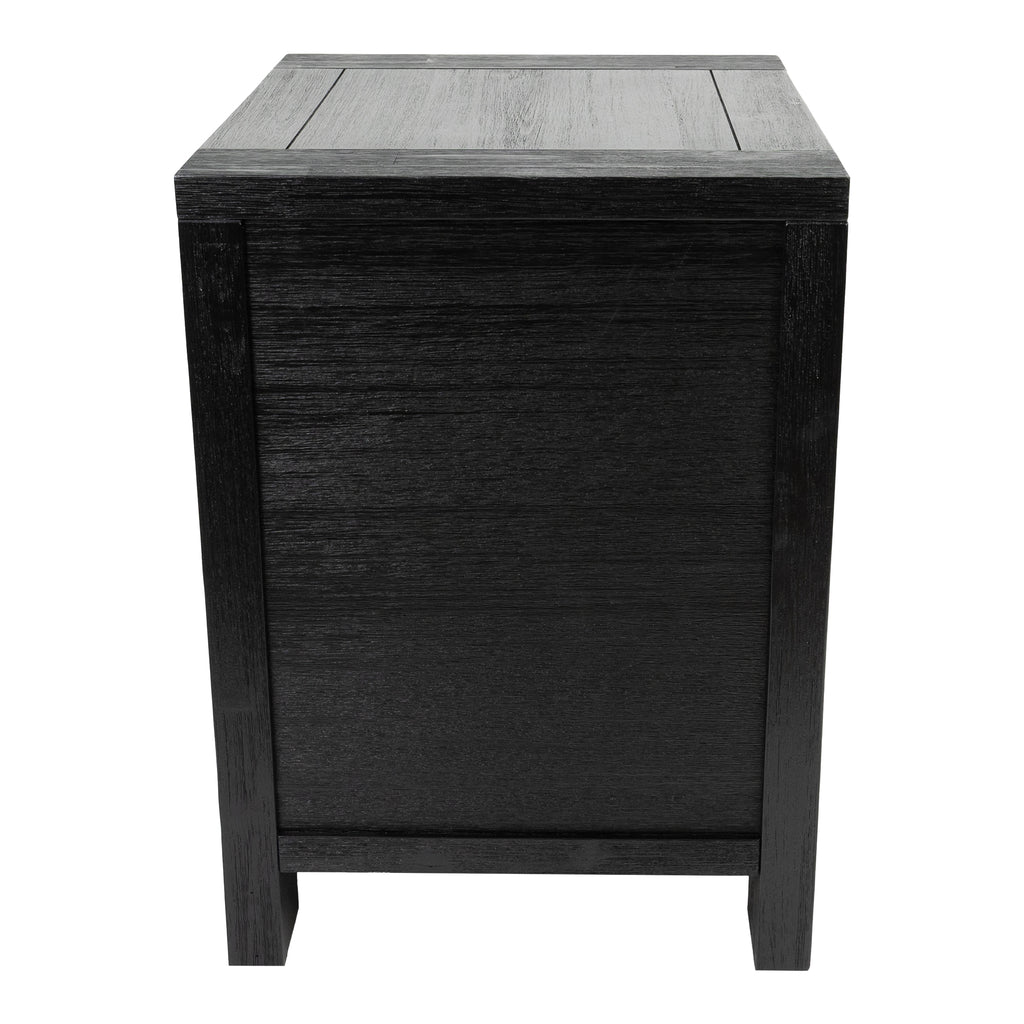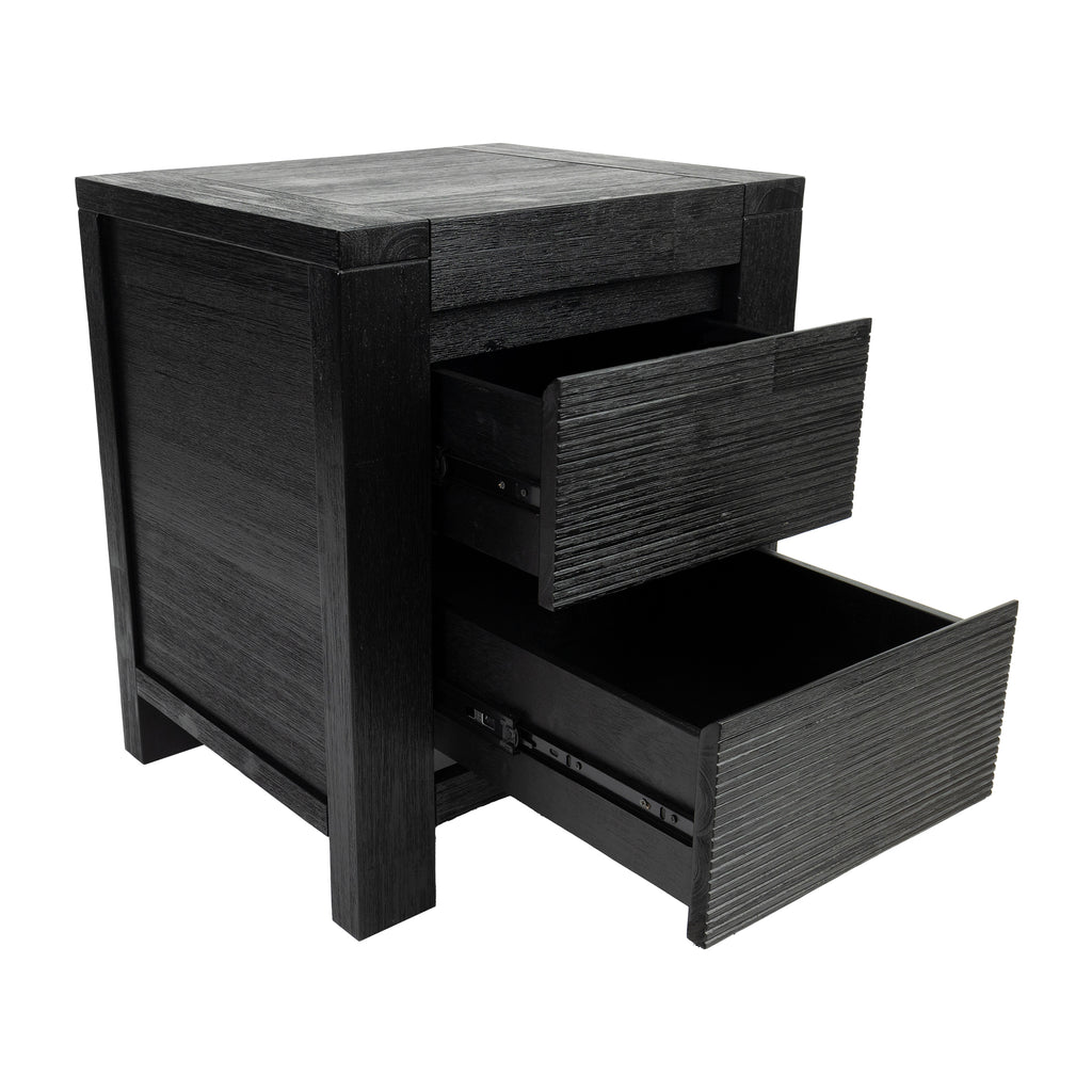 This beautiful bedside table makes a bedroom look classy. The furniture piece is crafted in the contemporary style, which not only enhances the charm of the bedroom but also helps keep it well-organized. The bedside has 2 spacious drawers. Both drawers have full metal extension runners and integrated handles for a clean seamless profile. A sturdy construction of solid acacia timber in brushed black finish gives the furniture piece a beautiful shine. The fully assembled bedside is made of sustainably harvested wood. Its black finish goes well with a variety of interior decor styles, and a one-year warranty is included with it.