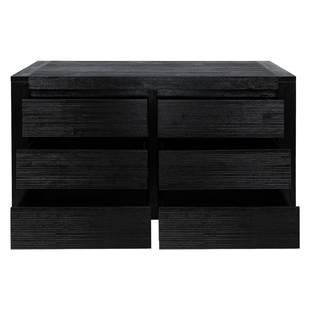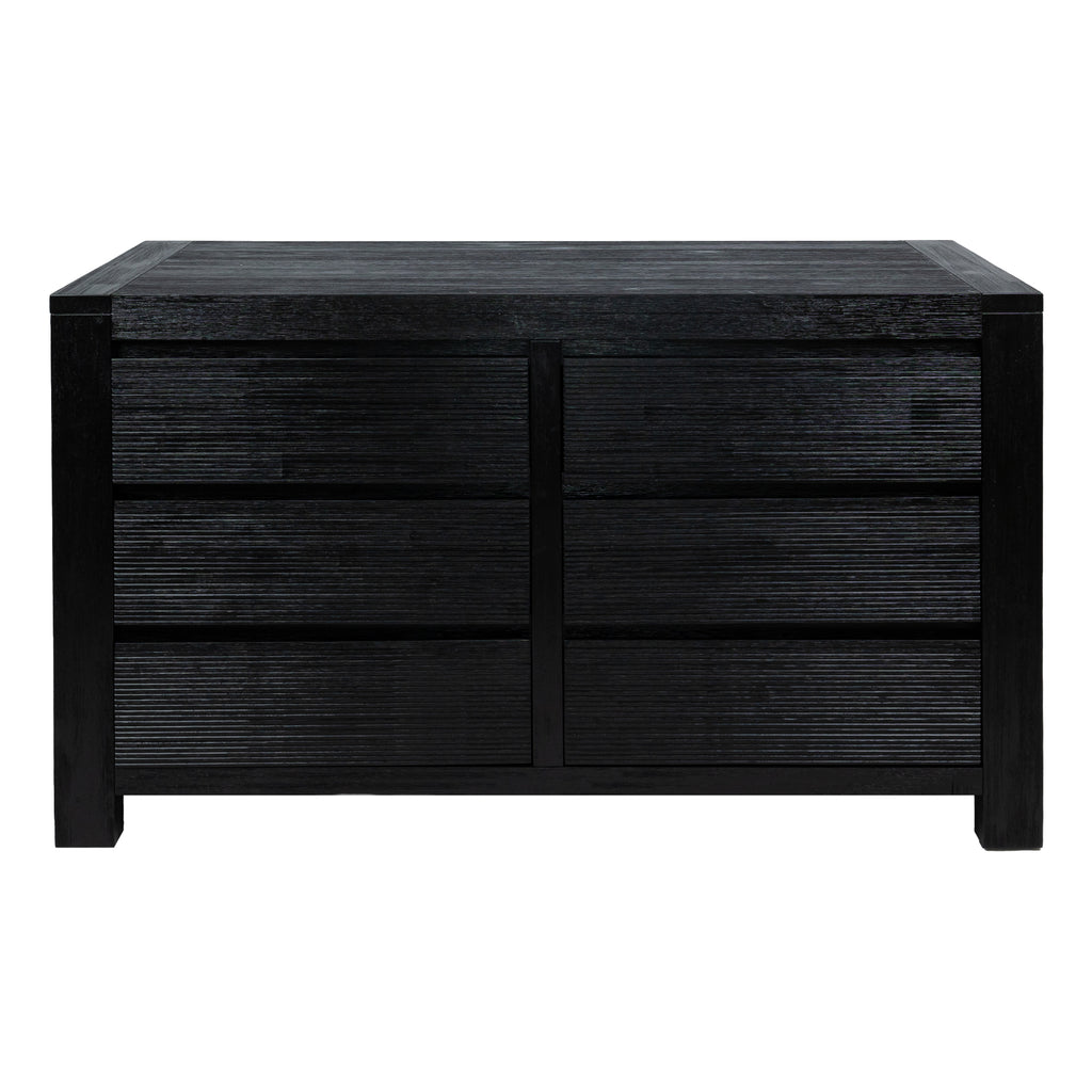 This beautiful dresser makes a bedroom look classy. The furniture piece is crafted in the contemporary style, which not only enhances the charm of the bedroom but also helps keep it well-organized. The dresser has 6 spacious drawers. All drawers have full metal extension runners and integrated handles for a clean seamless profile. A sturdy construction of solid acacia timber in brushed black finish gives the furniture piece a beautiful shine. The fully assembled dresser is made of sustainably harvested wood. Its black finish goes well with a variety of interior decor styles, and a one-year warranty is included with it.