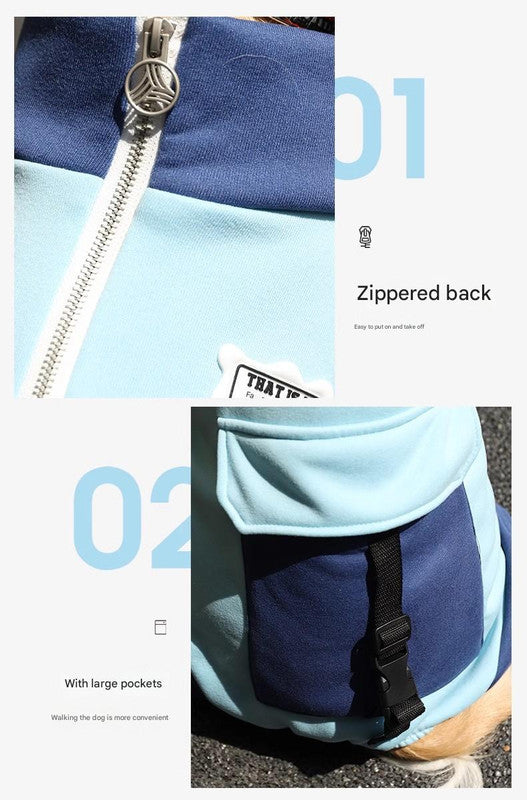 Ensure your medium to large breed dog, like Golden Retrievers or Labradors, stays warm, comfortable, and stylish during autumn and winter adventures with our Sporty Four-Legged Jumpsuit. Crafted from thickened sweater cloth, this full-body onesie offers excellent protection against the cold while allowing for freedom of movement.
