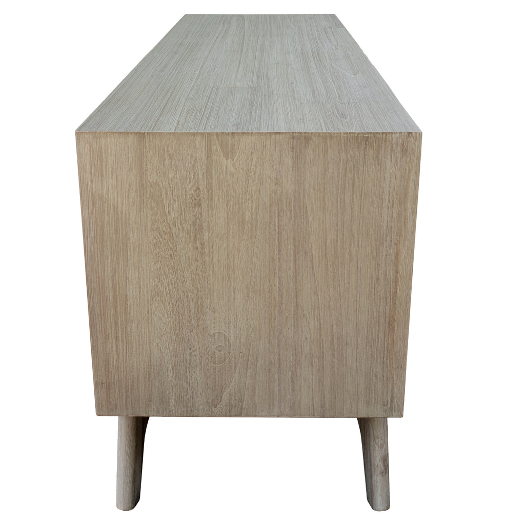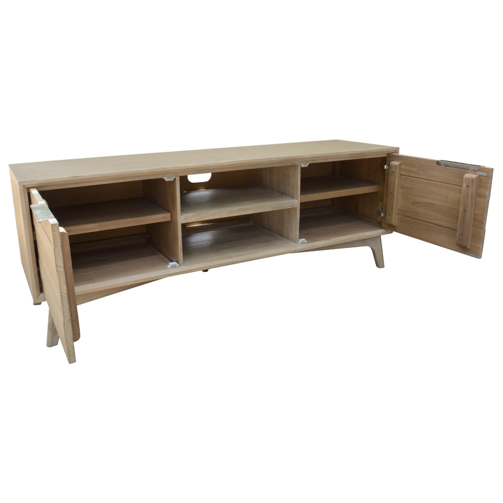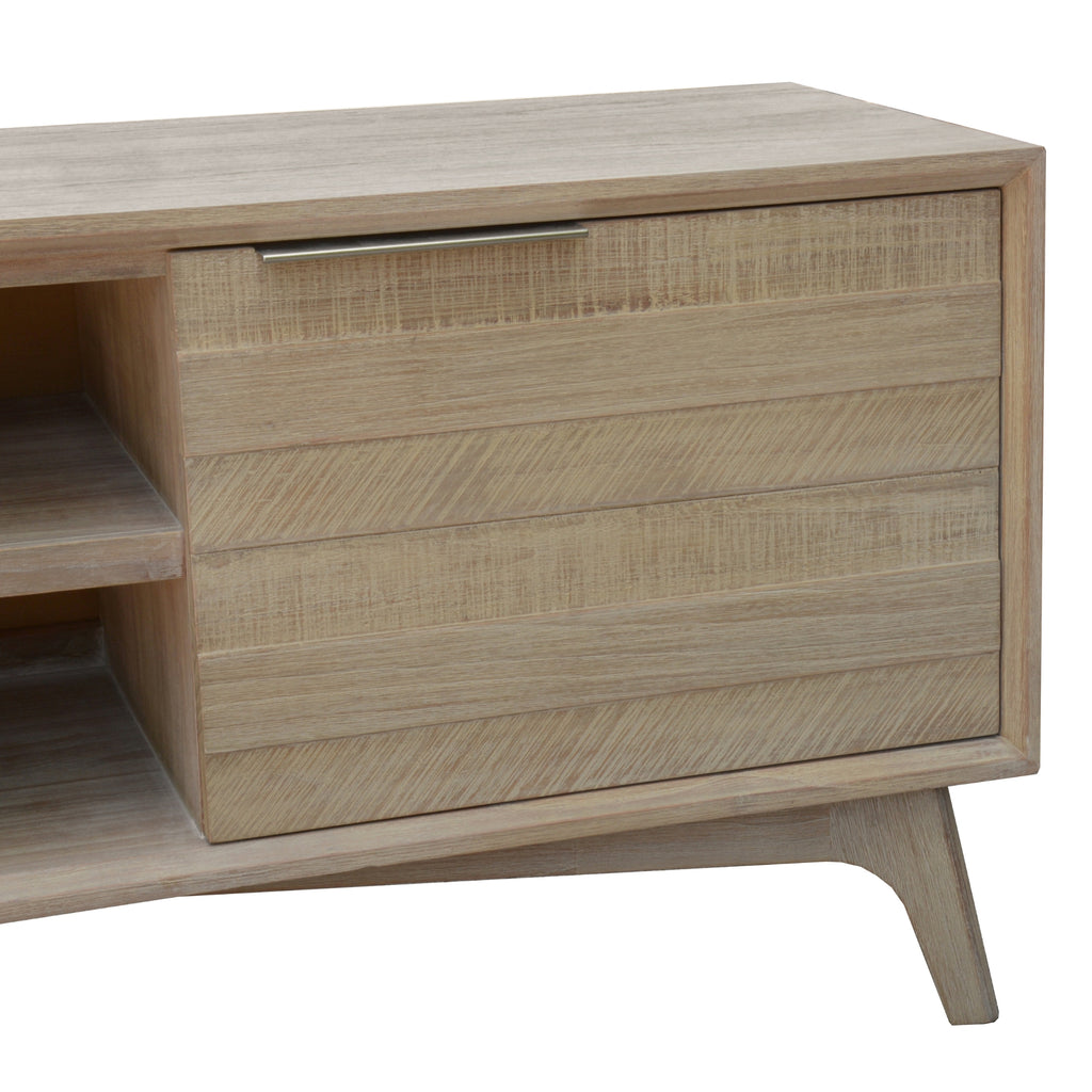 This ETU with fabulous features gives a fresh look to your living areas. The furniture, designed in a modern coastal style, solves the storage space issue readily. It has 2 doors, covering spacious compartments, and 2 shelves with nick. The doors have adjustable hinges and a magnetic catch. With legs in a tapered design, it looks quite beautiful. The ETU is made of sustainably harvested solid acacia wood, flaunting natural grain and knot patterns that give it a classic beauty. Painted in a brushed smoke finish, the furniture looks nice amid practically any interior decor theme. The easy-to-assemble furniture comes with a one-year warranty.