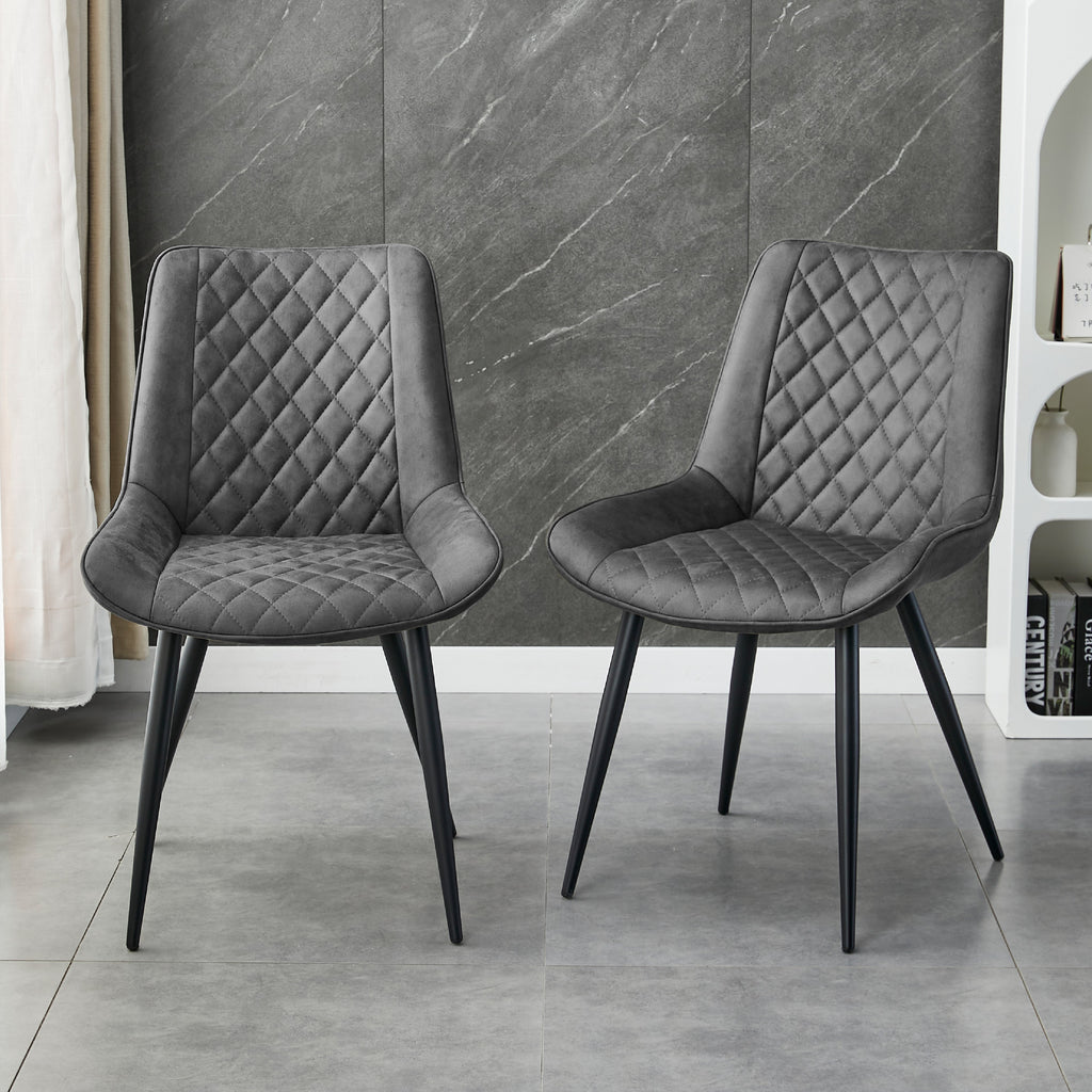 The Tyler Fabric Dining Chair effortlessly combines modern elegance with a touch of mid-century charm, making it a perfect addition to your dining area. Featuring a plush fabric, each chair is adorned with a detailed diamond quilting pattern on the backrest and seat, adding a layer of sophistication and visual interest. The soft, padded seat ensures comfort during long dinners or engaging conversations. Supported by sleek, black metal legs that provide stability and a striking contrast, these chairs not only offer a chic aesthetic but also boast durability. The Tyler Fabric Dining Chair is designed to elevate any dining space with its stylish appearance and inviting ambiance. Whether used for casual family meals or formal gatherings, these chairs are sure to impress with their comfort and design.