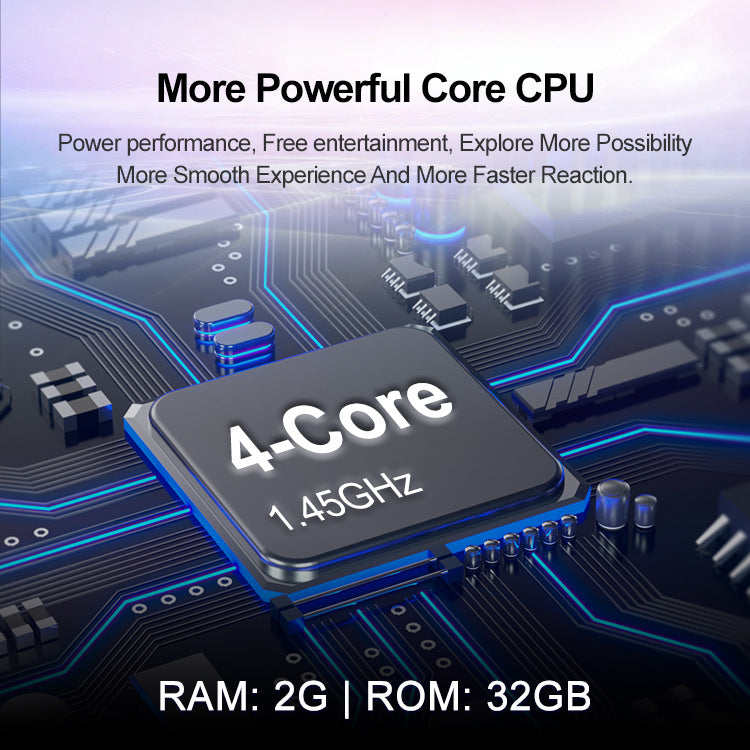- Powerful Core Performance: Equipped with a 4-core 1.45GHz CPU, 2GB RAM, and 32GB ROM for smooth operation and fast reaction times.
