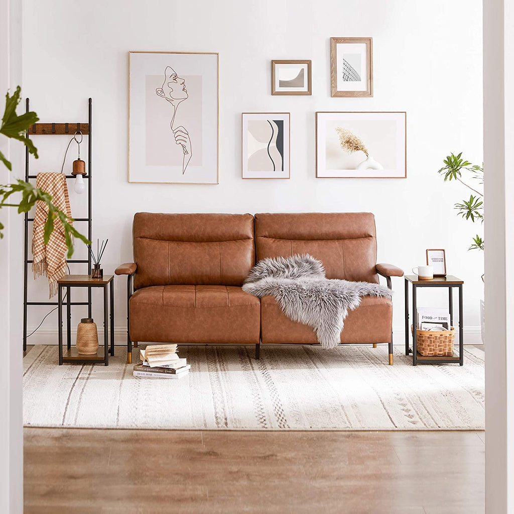 - Streamlined Yet Stunning: Giving an industrial look to any space, from the living room to bedroom, this side table has a clean, understated design while making an impressive statement with its warm rustic brown tone and matte black steel accent