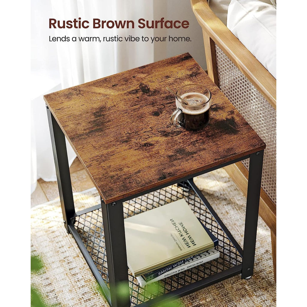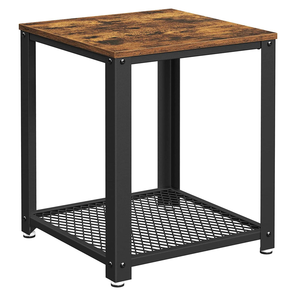 - Industrial Design: Featuring a rustic brown surface, black steel frame, and eye-catching metal mesh accent, this side table with an industrial vibe will add a dash of character to your living space.Assembly Required.Material:Engineered Wood;Alloy Steel.Item Dimensions:17.7" D x 17.7" W x 21.7" H