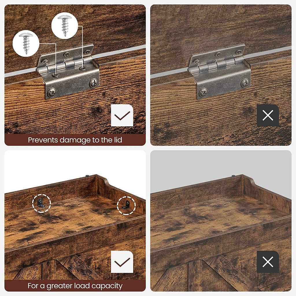 - Please take a seat: This seat chest is made of robust wood chip and can hold up to 100 kg. So you can sit down to put on or take off your shoes in peace