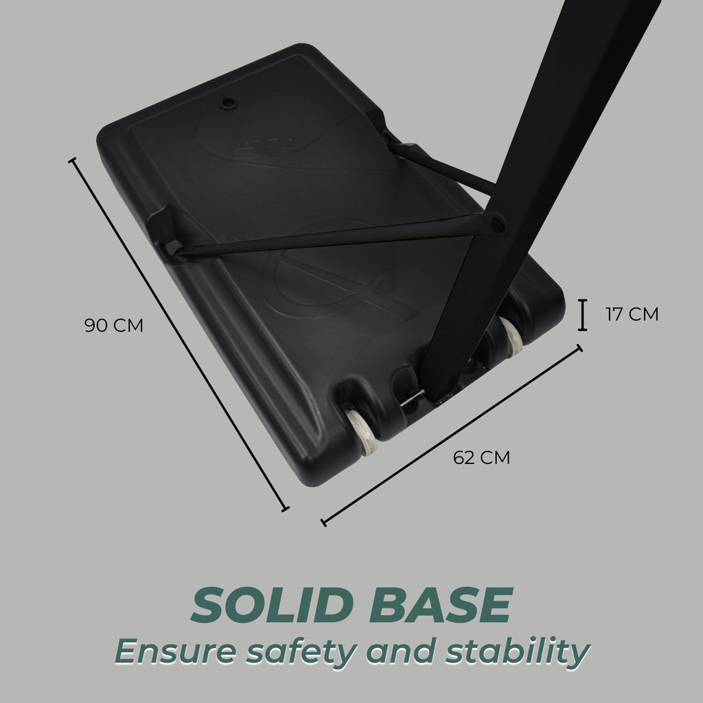 The mobile base can be filled with water or sand up to 35L to ensure your safety and stability when shooting the basket.