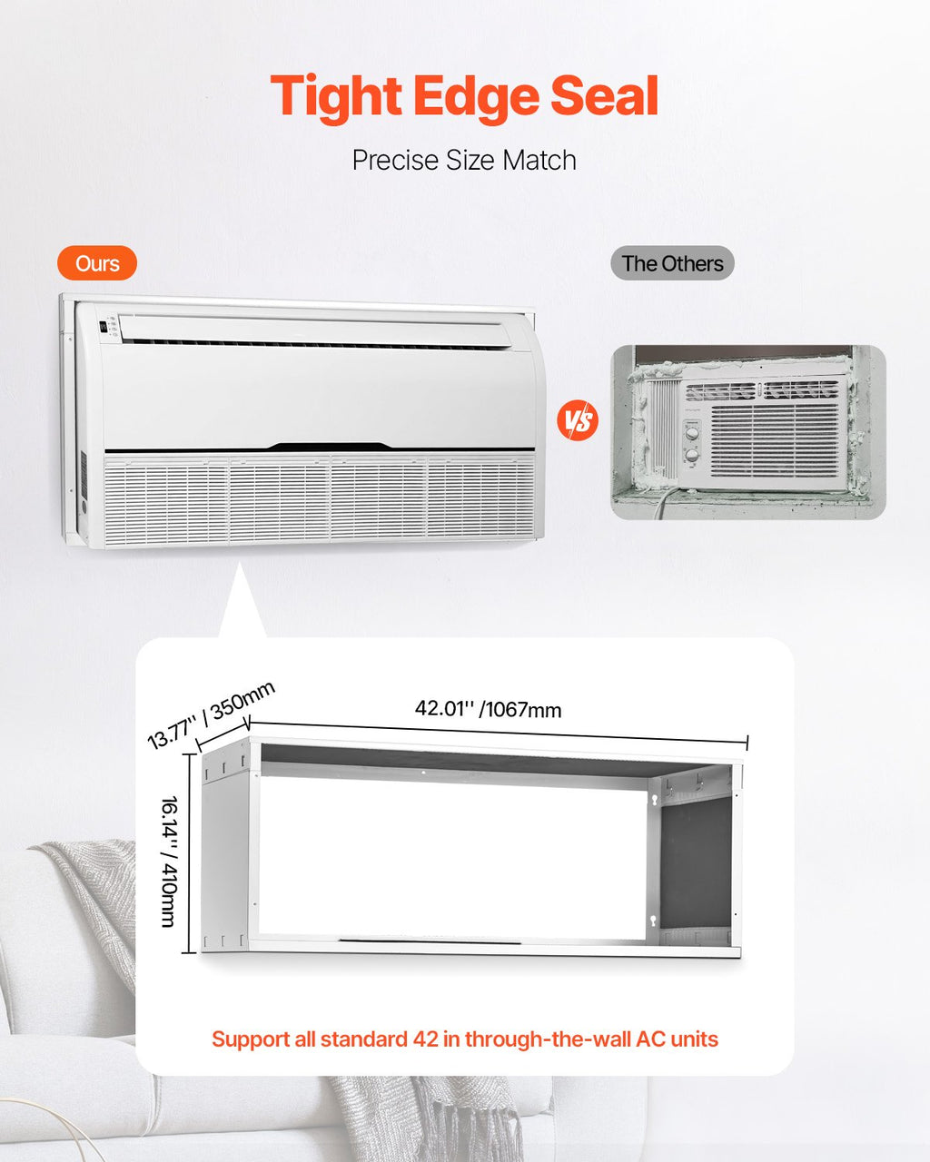 Compatible with various brands of window air conditioners, this air conditioner wall sleeve fits all standard 42 in models. Ideal for both residential and commercial use, it easily adapts to your AC unit.