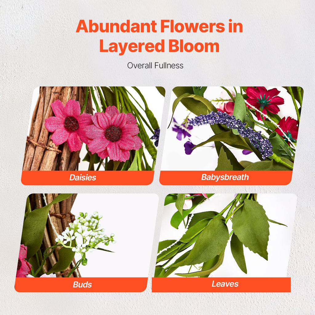VEVOR Artificial Decorative Wreath 55.88 cm Pink Green with Daisies Year Round