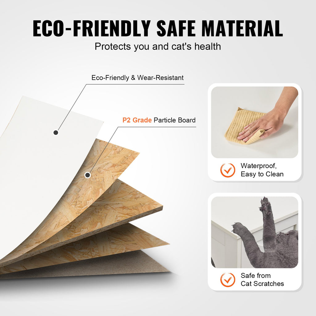VEVOR Cat Litter Box Enclosure Wooden Litter Box Furniture Hidden 2 Rooms White