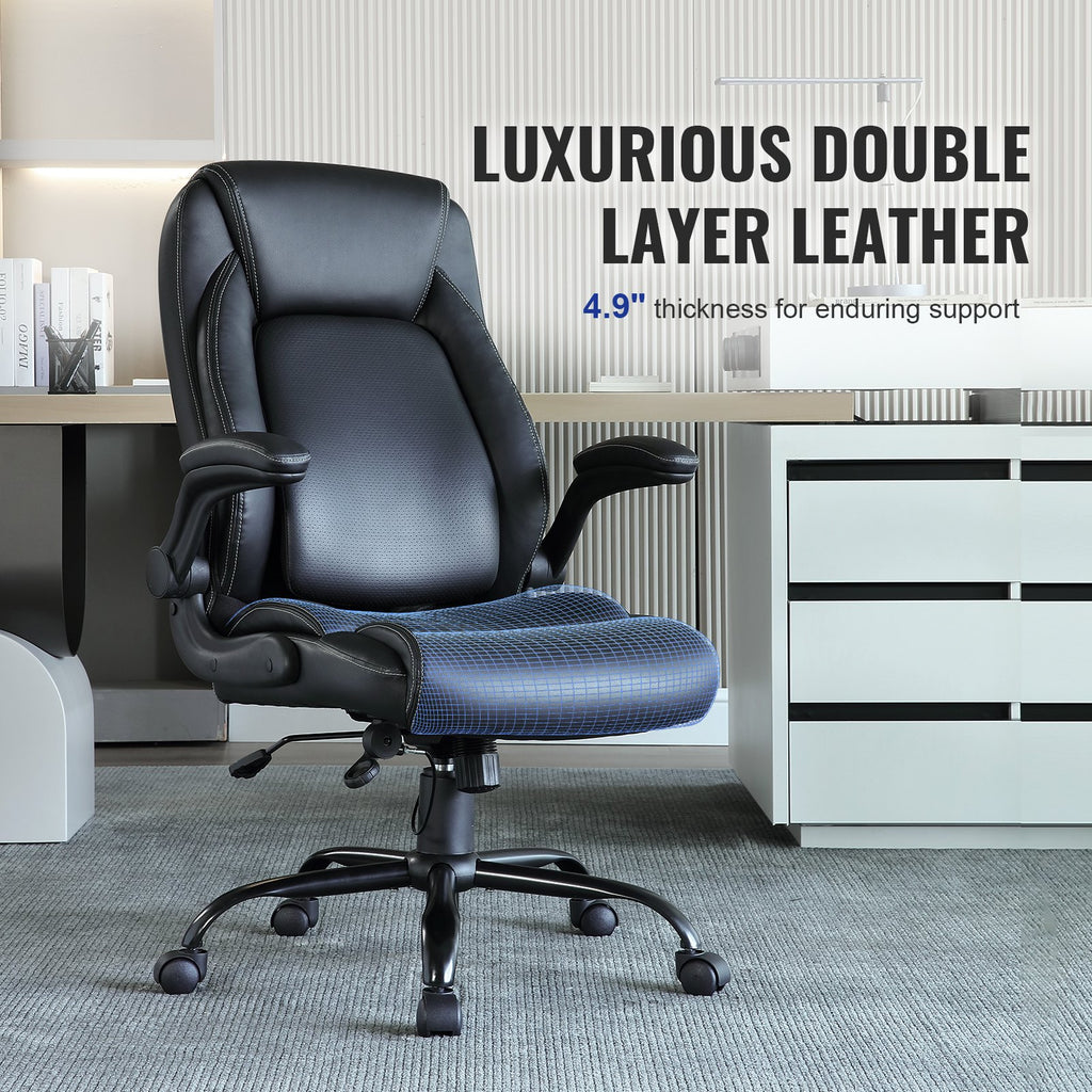 With a 4.9-inch thick cushion and a 20-inch waterfall-shaped double-layer design, the executive desk chair provides superior resilience, conforms to the body, and is suitable for prolonged sitting, offering an unparalleled comfortable experience.