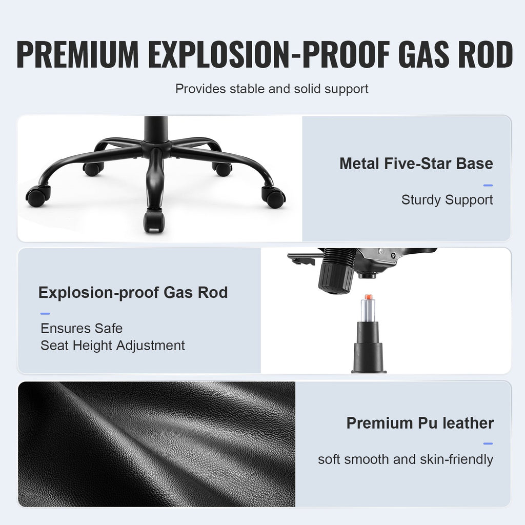 The comfortable office chair with a 300 lbs capacity, a metal base, and a skin-friendly, soft PU leather feel, providing better quality and durability, providing stable support and a comfortable touch for extended use.