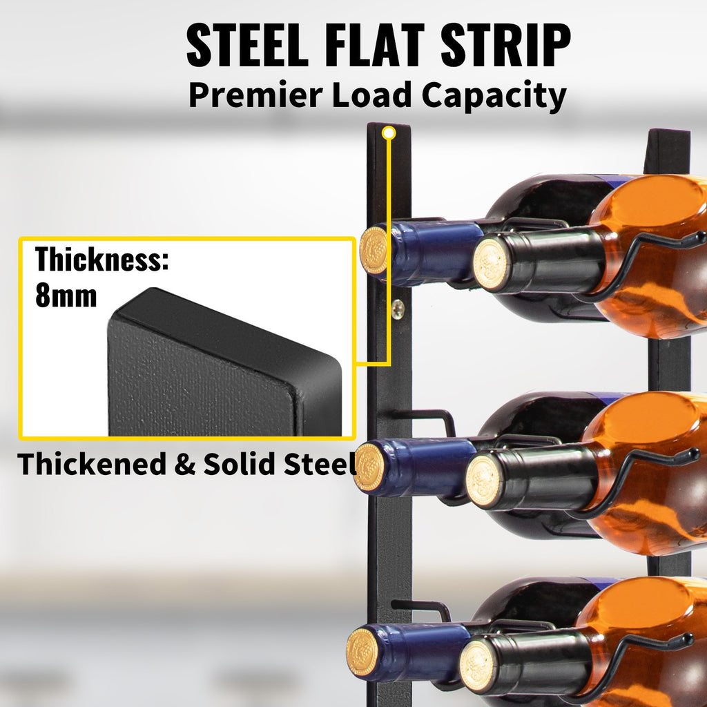 VEVOR Wall Mounted Wine Rack, 12x2 Bottles Wine Holder Towel Rack, Black Steel Vertical Wine Rack, Modern Decorative Wall Mounted Wine Bottle Holder, Forward Design Simple Storage Wall Rack 48x11x1 In