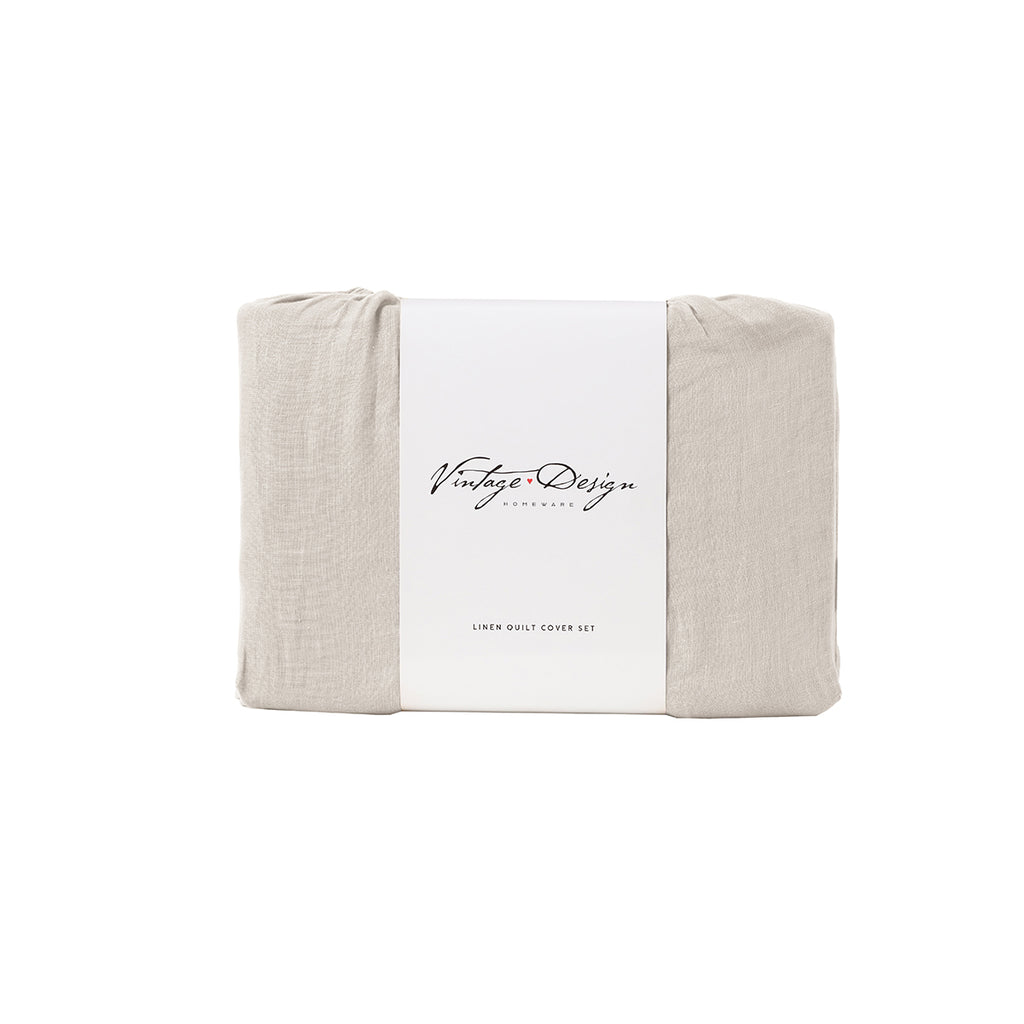 Vintage Design Homewares Natural French Linen Quilt Cover Set Super King