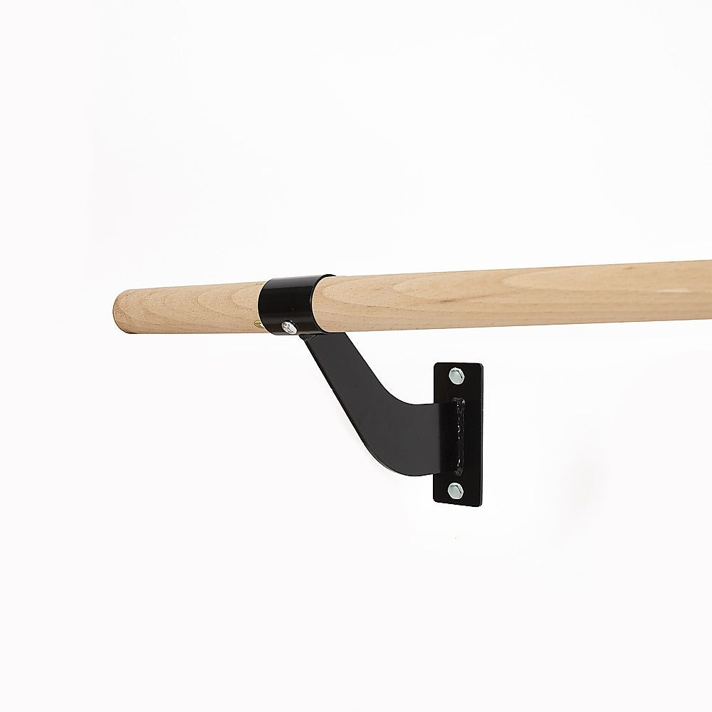 The barre features robust black brackets made of durable steel, securely fastened with screws. This reliable locking mechanism guarantees stability and eliminates any unwanted wobbling during use. With this Wall Mounted Ballet Barre, you can have complete confidence in its steadfastness.