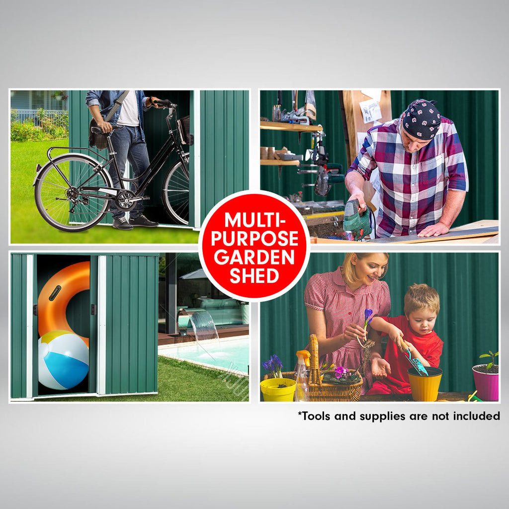 Wallaroo Garden Shed Flat 4ft x 6ft Outdoor Storage Shelter - Green