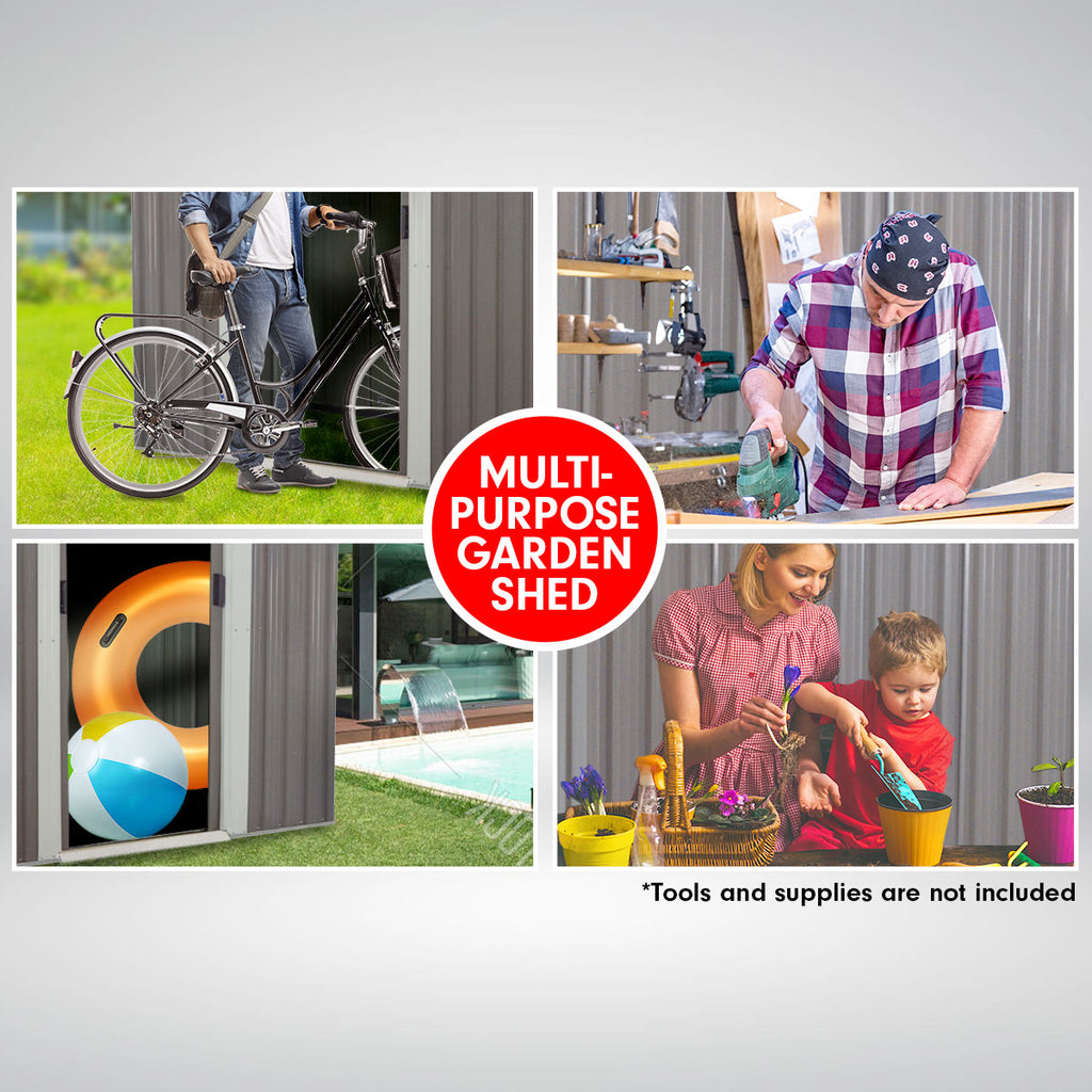 Constructed from galvanized steel and polypropylene this sturdy shed is weather and rust-resistant and designed to withstand the harshest weather elements. It features ventilation vents to let in air and natural light.