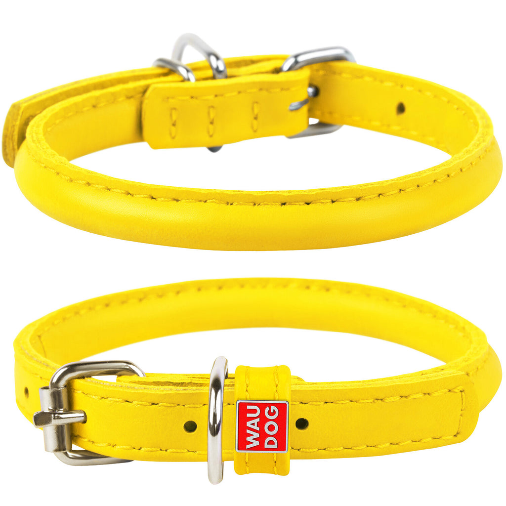 Waudog Leather Round Dog Collar 39-47CM YELLOW